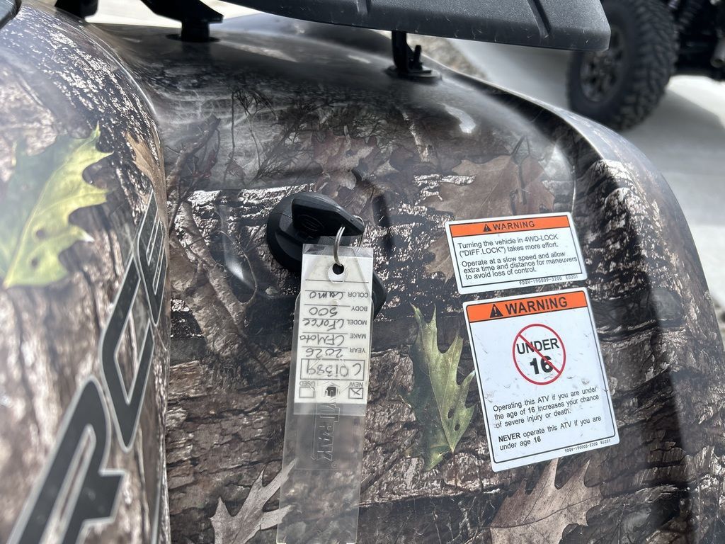 2026 CFMOTO CFORCE 500HARD WORK MOVES FAST OUT HERE.Now, check out these numbers: 34 horsepower. 29 lb-ft of torque. 10.3 inches of ground clearance. 1,350 pounds of towing capacity. 2,500-pound winch. 4WD with diff lock. All of it standard. This isn’t just a mid-size ATV—it’s the golden ratio of power, price, and pure usability. The CFORCE 500 delivers confident, smooth performance with a liquid-cooled 500cc engine and ride-by-wire throttle. Class-leading vibration reduction keeps it comfortable all day, and the EPS makes it nimble in tight woods and steady at speed. Whether you're hauling firewood, exploring backcountry, or plowing a fresh dump of snow—this machine just shows up and gets it done.Features may include:Electronic Power Steering (EPS)Tuned to assist when you need it and stay firm when you don’t. Responsive on the trail, confident in the corners.500cc Liquid-Cooled Engine34 horsepower of smooth, consistent power from a Bosch® EFI-equipped single. Paired with a CVTech® CVT, it pulls hard, runs cool, and keeps going.2,500-Lb. Factory WinchBuilt in and wired up. Whether it’s recovery, logs, or snowbanks—this winch isn’t just for looks.3.5" LCD DisplayClean, clear, and fully digital. Keep your vitals front and center at a glance.RideVision™ LED LightingBright, efficient LED lighting for better visibility and modern style—standard.