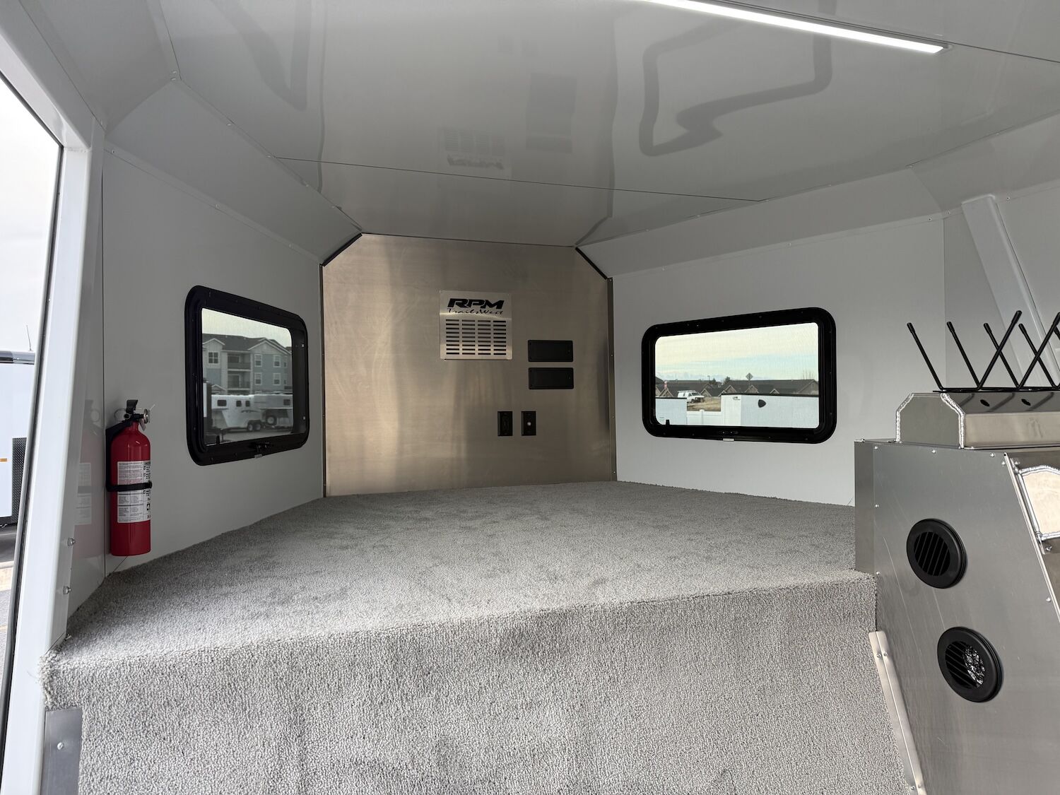 The 2026 RPM by Trails West is here!! Standard Features include a Double Step, Additional 4" of Interior Height, Aluminum Mill Finish on interior, Frameless Windows, and the newly added option of Protech Flooring! This new flooring eliminates the need of having ski glides in the box of the trailer and elevates the floor about 1/2" to keep you from standing in water when all of the snow is melting off your machines and gear! Packages we offer here at the dealership is our Life Elevated Package which includes: Propane Gauges, Garbage Can, Self-Retractable USB Charge Cables, and Ski Glides on the Front Ramp. We also offer Solar Packages to satisfy your needs of power off grid! With our level of expertise we can get you set up in a trailer specified for your needs for you to use for years to come! Come check us out! You won't regret it! The RPM Snowmobile Trailer from Trails West ensures that you travel in style while still being convenient and practical. It comes standard with the Roof and Walls Insulated, LED lights, 40,000BTU Furnace, Premium Stereo, Tons of Charging, a place to hang all your gear and much more. You can’t go wrong with this trailer! Swing on by to check it out for yourself!
