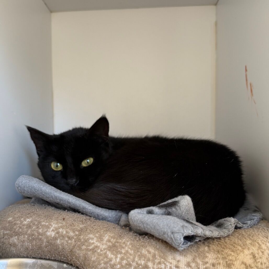 Meet Malibu, the enchanting 6-year-old "panther" with stunning yellow eyes that seem to hold a thousand stories. This shy but sweet kitty may take a little time to come out of her shell, but once she trusts you, she’ll be your most loyal and loving companion. Malibu’s gentle nature is perfect for a calm and patient home where she can feel safe and loved. With her sleek black coat and quiet grace, she’s the picture of feline elegance. She’s also spayed, vaccinated, and ready for her forever home. If you’re looking for a quiet, beautiful soul to share your life with, Malibu is ready to meet her match. Could it be you?