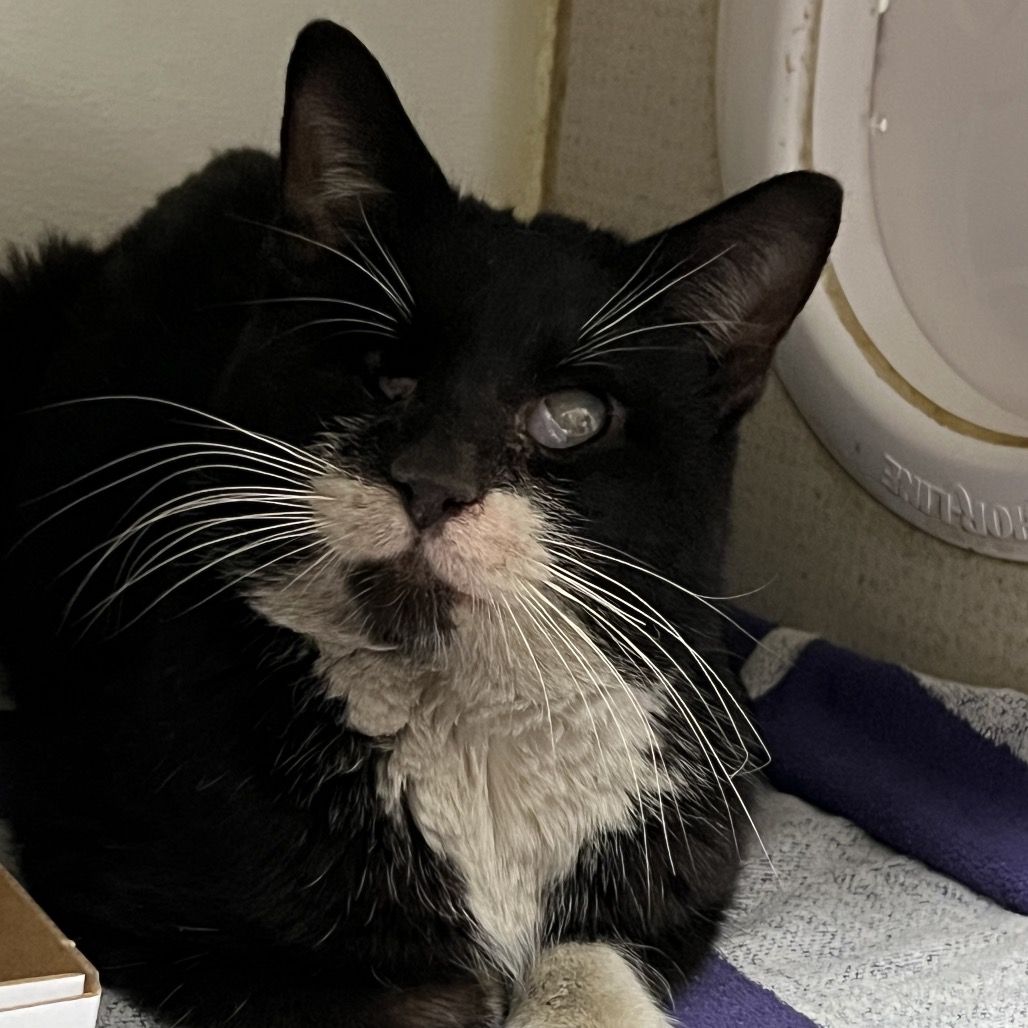 Trent is a dashing black-and-white tuxedo gentleman with a heart as soft as his whiskers. With limited eyesight, he experiences the world in his own thoughtful, curious way—guided by sounds, scents, and the comforting presence of his people. While he hasn’t warmed up to touch yet, he truly likes being near his humans, quietly keeping them company like a loyal shadow. This sweet and handsome boy has a delightfully silly side, especially when a wand toy appears. That’s when Trent’s playful spirit shines brightest, leaping and swatting with surprising enthusiasm and charm. He’s a gentle soul who thrives on patience, kindness, and a calm environment where he can build trust at his own pace. If you’re looking for a unique companion with a tender personality and a playful streak, Trent might just be your perfect match.