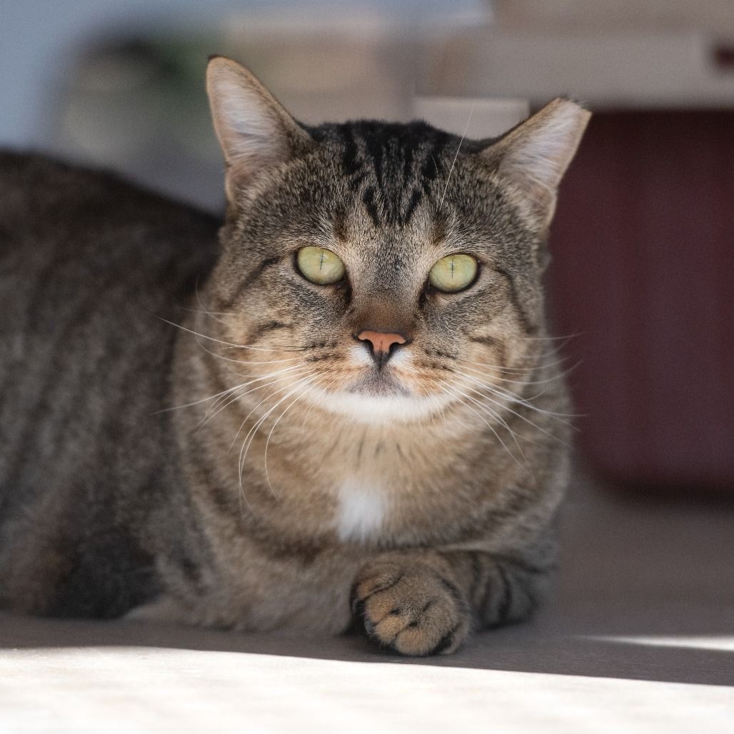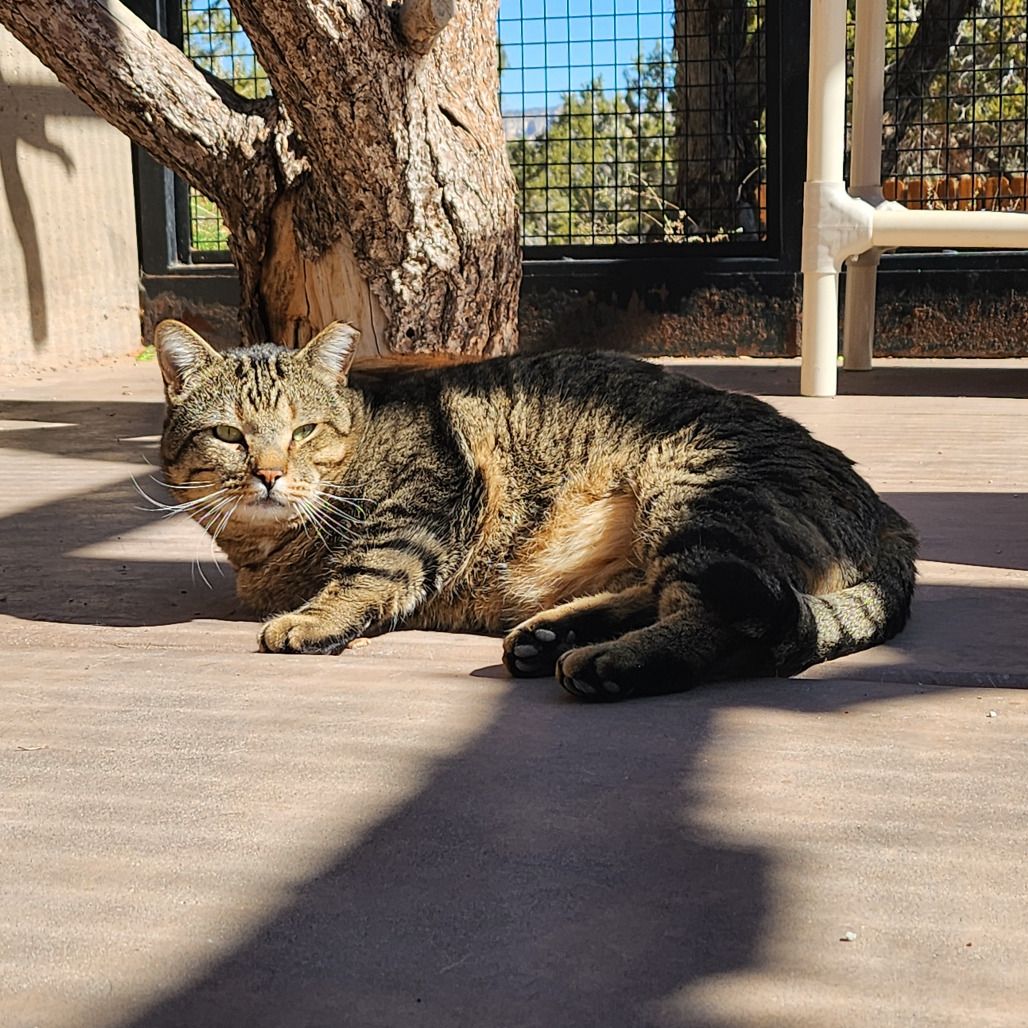 Benson is a charming three-legged kitty with a big personality and an even bigger heart. Don’t let his missing leg fool you—he gets around just fine, whether he’s climbing up to his favorite spot in the rafters or stretching out in a warm patch of sunshine for a well-earned nap. Silly and sweet, Benson has a playful, goofy side that shines through when he’s feeling comfortable. He loves to lounge, observe, and occasionally surprise everyone with his little bursts of energy. While he’s still slowly warming up to humans, each day brings a bit more confidence and curiosity. With his resilience, cuteness, and endearing quirks, Benson is the kind of cat who quietly wins you over before you even realize it.