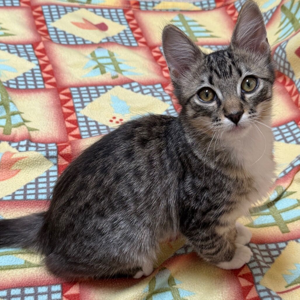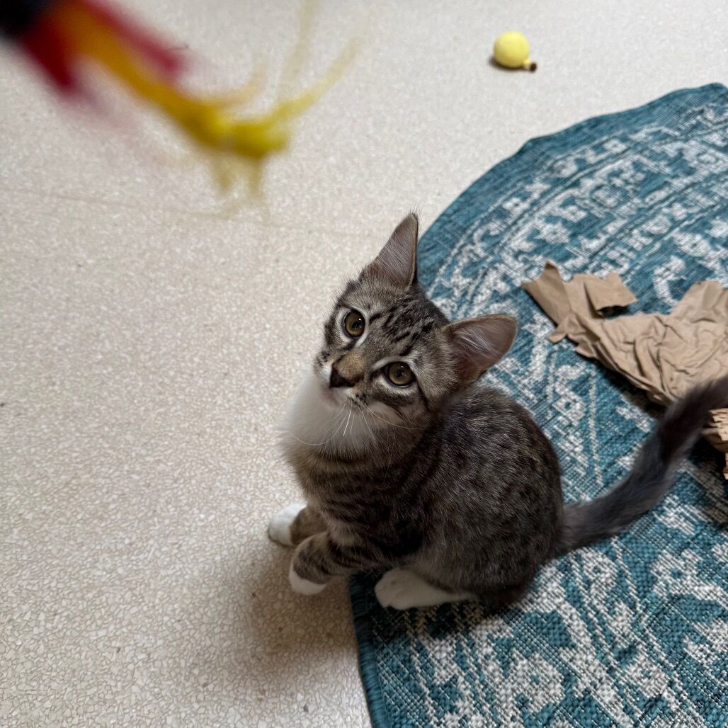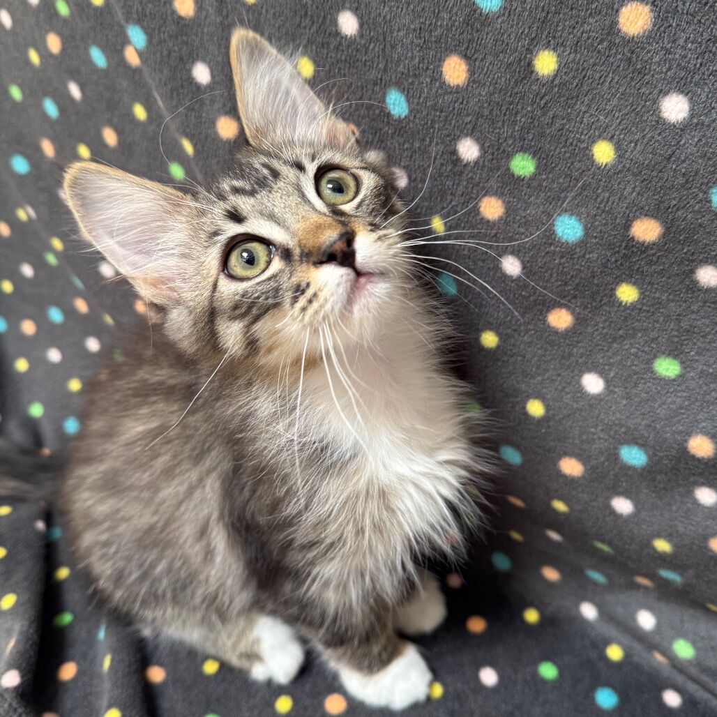 Earth is a calm little fluff ball who loves his pets and cuddles. His big brother Mercury is his daily playmate and favorite groomer. Never know when Earth's forever person may be stopping by! He loves the company of all his feline friends and even purrs like crazy when his buddies are getting their share of pets and cuddles. But he knows his place when the elders tell him to go away. You never know where you will find him...snuggling in his bed or off on a curious adventure since he is a kitten he has much to learn. Earth looks forward to meeting you and hoping you have a forever home for him.