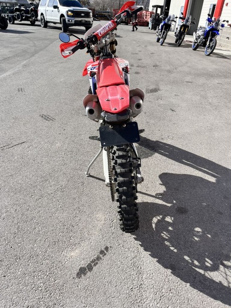 2017 Honda® CRF450R The Ultimate Holeshot Machine. Open-class motocross might as well be called the unlimited class. There’s no room for anything but the best here, and the best keep getting better and better every year. Well, have no fear, because the all-new 2017 Honda CRF®450R is here. Major improvements everywhere, especially to the engine’s increased power and peak torque, help drive you to the front of the pack. There’s even an optional electric starter this year. And when you’re in the lead in the first turn with an empty track in front of you, it’s a whole new kind of race. Features may include: Downdraft Fuel Injection Part of an entire engine overhaul for 2017, the new downdraft intake tract and FI body help and increase both power and fuel-metering precision. It’s part of the reason the CRF®450R offers such explosive power and massive torque, especially out of the starting gate and in the critical first 100 feet of the race to the first turn. New Showa® Spring Fork An all-new 49mm Showa® fork features a conventional spring design that helps increase the CRF®450R’s front-suspension precision, handling and feel. Next-Generation Aluminum Frame New for 2017, our Next-Gen twin spar aluminum frame positions the new rear shock’s mounting point lower, opening up the airbox area and contributing to a lower center of gravity for more holeshots. The frame geometry also helps improve traction, feeling and steering precision.