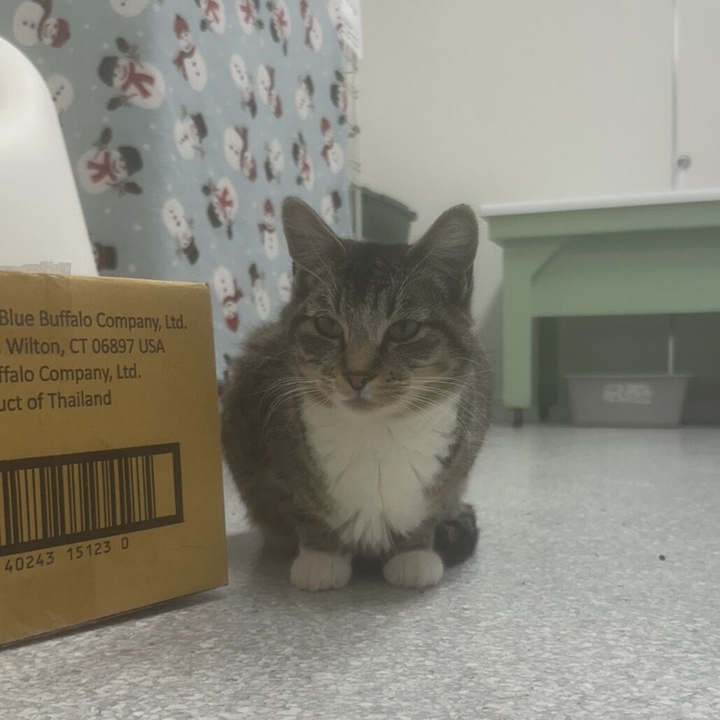 Amazon is a cautious but curious female cat who’s still learning to trust the humans in her world. With a quiet strength and a watchful gaze, she prefers to observe from a distance before letting anyone too close. Though slow to warm up, Amazon’s heart is soft—especially if you offer her a spoonful of baby food, her absolute favorite treat. She loves nothing more than finding a sunny spot to stretch out in and doze the day away. With time, patience, and a little sunshine, Amazon is blooming into the gentle, loving cat she was always meant to be.