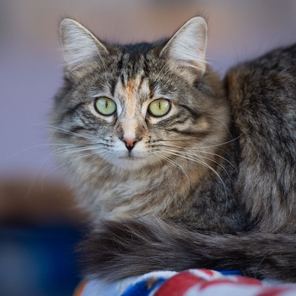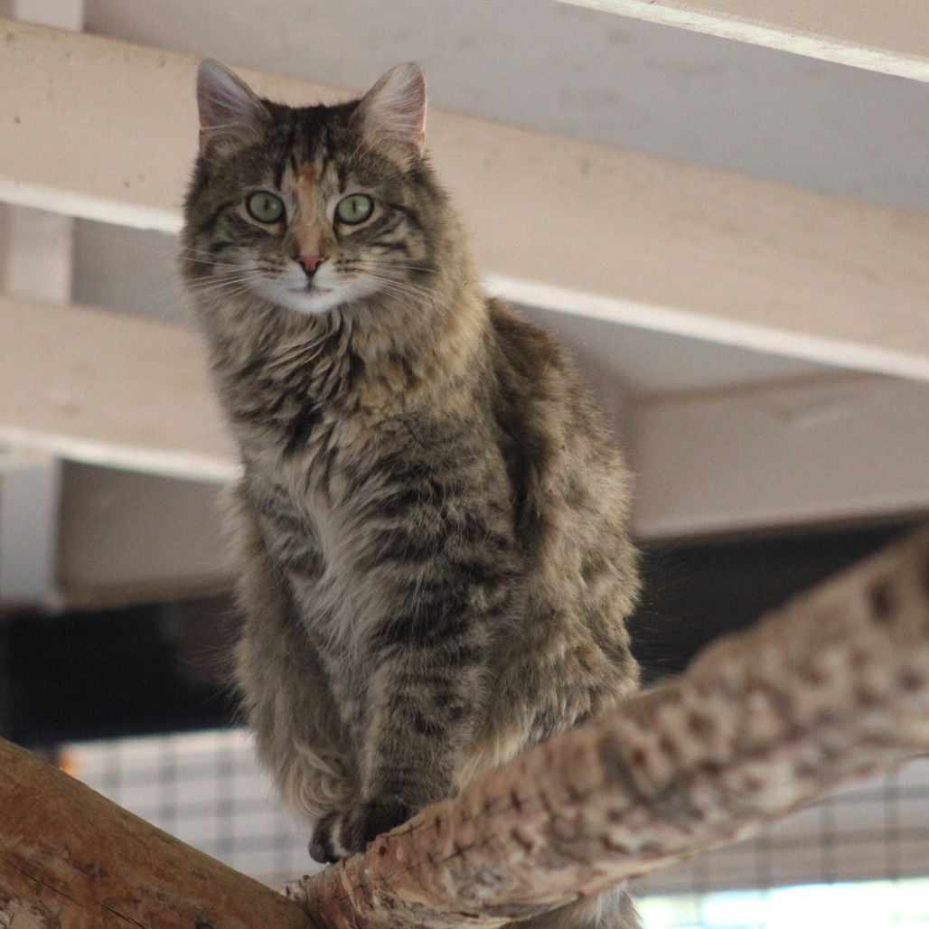 Ramsay is a quiet and observant cat who moves through the world with cautious grace. Though she’s tolerant of humans, she keeps her distance, always sizing up her surroundings before settling in. Ramsay prefers calm, predictable spaces where she can feel safe and unseen. Her presence is subtle but steady, a quiet companion who values peace over attention.
