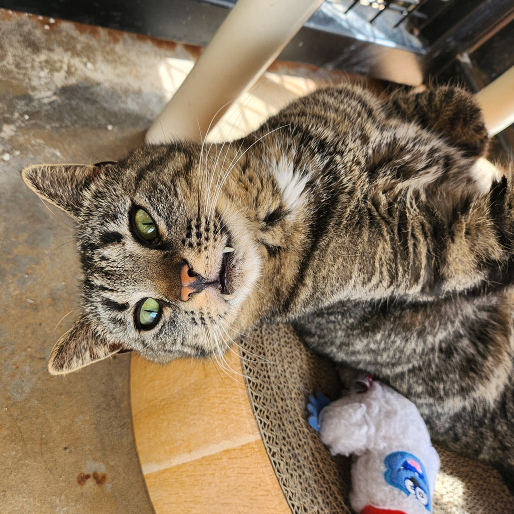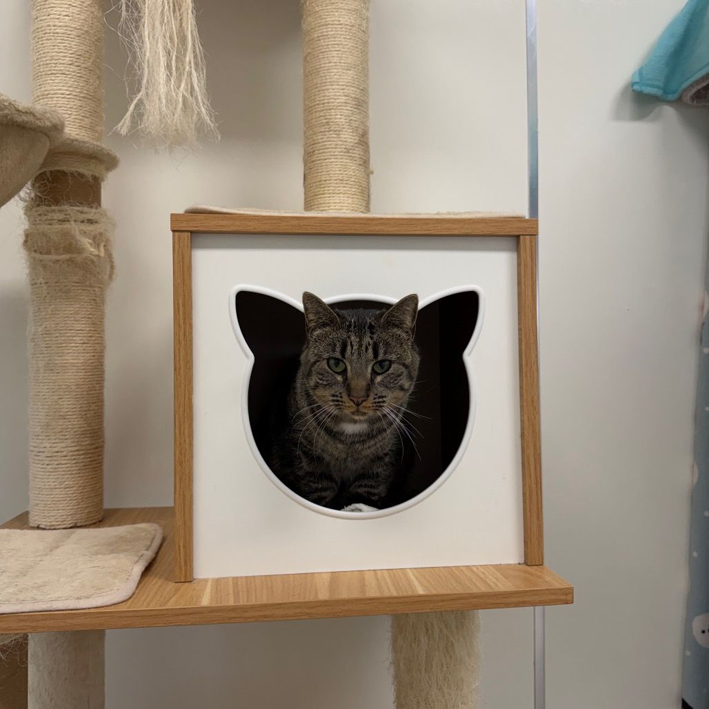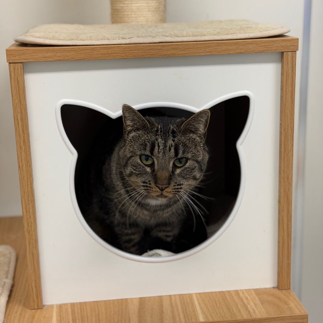 Edie is a shy and thoughtful cat who prefers to keep her distance until she’s sure she can trust you. She finds comfort in quiet hideaways or perched in sunlit windows. But when the house goes quiet at night, Edie comes alive! She is definitely a night owl exploring every nook and cranny with stealth and precision. Earning her trust takes patience, but once she lets you in, you will have a soft friend for life.