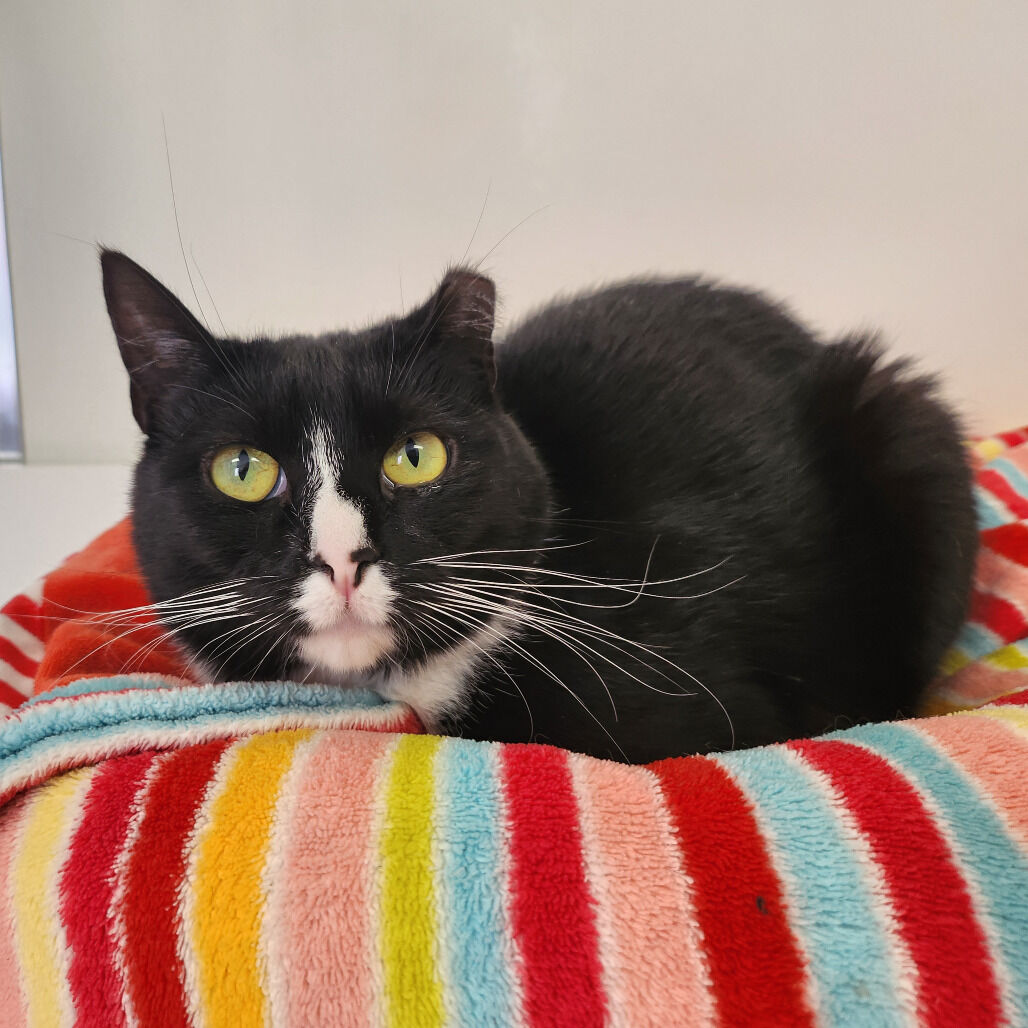 Hera didn’t always trust people. When she first arrived, she preferred to keep her distance and watch the world from a safe spot. But with time, patience, and a little curiosity, she’s discovered that humans can actually be pretty nice—especially when they come with gentle pets. These days Hera will happily accept affection on her terms, but her true passion in life is play. Give her a toy and she transforms into a full-blown acrobat—leaping, chasing, and bouncing around to show off her impressive agility. Part athlete, part cautious sweetheart, Hera is proof that trust can grow… especially when there are toys involved.