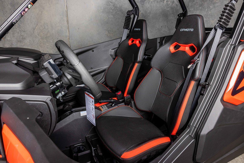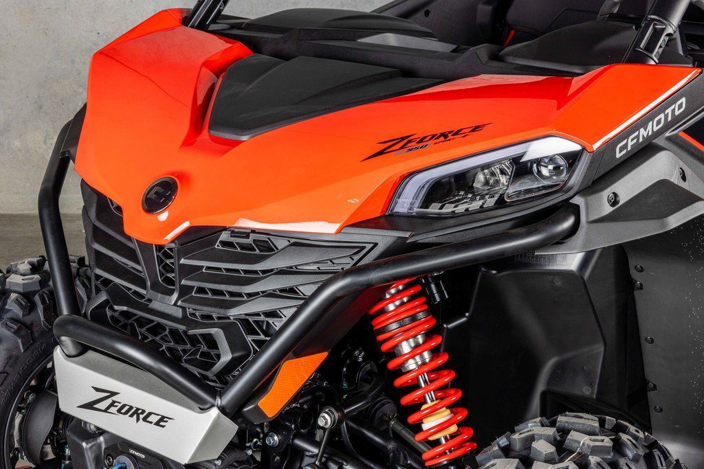 The ZFORCE 950 Sport-4 takes the same aggressive DNA as the 950 Sport and stretches the wheelbase to fit four full-sized bolstered seats—so everyone can chase the adrenaline together. The 963cc V-Twin engine delivers 83 horsepower with SPORT and NORMAL ride modes to match terrain or mood. Dual-mode power steering and long-travel suspension keep the ride sharp, while 27" CST tires provide grip that bites when the trail gets loose. Add in premium cabin touches, 12 inches of ground clearance, and cargo space to match—and you’ve got one serious addiction that’s impossible to keep to yourself.