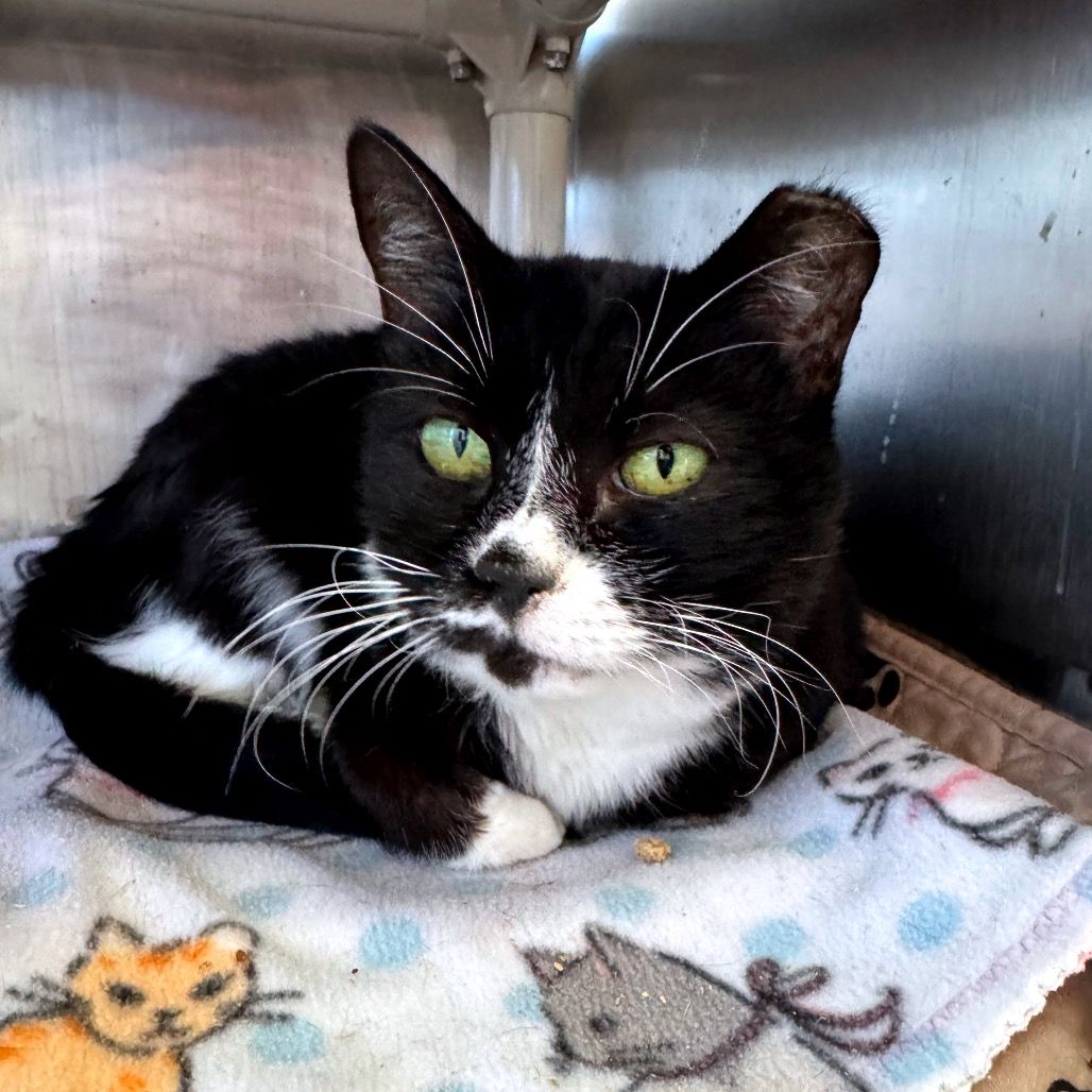 Hepburn is a mature kitty with a heart of gold. She already knows how to be the best lap cat—no kitten chaos required! Friendly with people and other cats, she loves settling into a warm lap and purring contentedly all evening. Hepburn is ready to begin her next chapter in a furever home filled with comfort, companionship, and love.