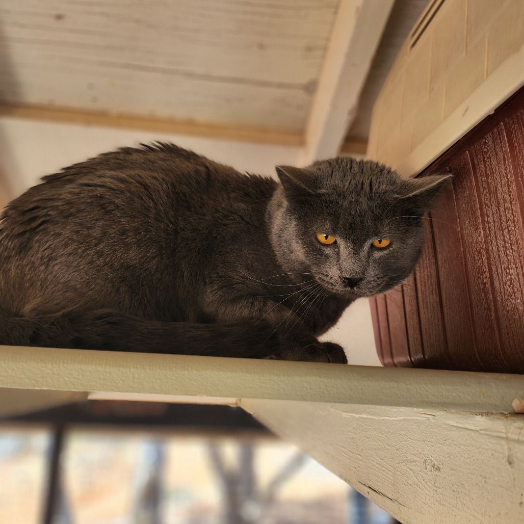Cromwell is a large, handsome all-gray cat with a calm, reserved nature. He prefers to keep to himself and values his independence from both people and other cats. A quiet environment where he can observe from a distance suits him best. While he enjoys a good meal, he’s not overly food-motivated and tends to take everything in stride. With his self-sufficient personality, Cromwell may make an excellent barn cat, where he can have space to roam and a job to do while living life on his own terms.