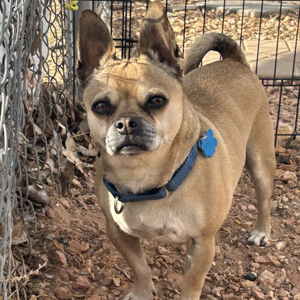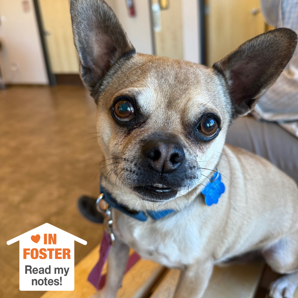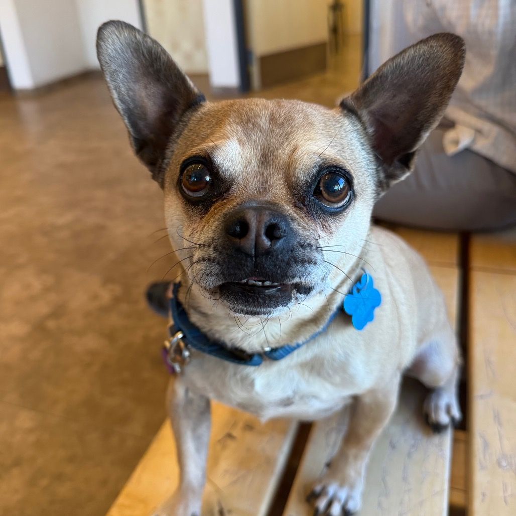 πΆπππ ππ π‘ππππππππππ¦ πππ£πππ ππ π πππ π‘ππ βπππ π’ππ‘ππ βπ πππππ βππ πππ€ ππππππ¦. πΌπ π¦ππ’ π€ππ’ππ ππππ π‘π ππππ‘ πΆπππ, π€π πππππππππ π πβπππ’ππππ ππ πππππππ‘ππππ‘ π€ππ‘β πππ ππ ππ’π π΄ππππ‘πππ πππππππππ π‘π , π π π€π πππ πππ π’ππ βπ ππ βπππ π‘π ππππ‘ π¦ππ’ π€βππ π¦ππ’ πππππ£π. πππππ π πππππ βπ΄ππππ‘ πΆπππβ π‘π πππππππ‘π ππ πππ‘ππππ π‘ π π’ππ£ππ¦ πππ πππ ππ ππ’π π΄ππππ‘πππ πππππππππ π‘π π€πππ πππππππ‘ π€ππ‘β π¦ππ’ π‘π π ππ‘ π’π ππ πππππππ‘ππππ‘! Meet Coco, the pint-sized pug mix with a big personality and an even bigger heart! This energetic little guy loves to bounce around and bring joy wherever he goes, but donβt let his playful side fool youβCoco is just as happy curling up in your lap for a cozy cuddle session. Coco is quite the conversationalist and will charm you with his adorable mumbles and squeaks to let you know exactly whatβs on his mind. Whether heβs reminding you itβs mealtime or simply saying hello, his sweet little sounds are guaranteed to make you smile. He gets along wonderfully with other dogs and would likely enjoy having a canine buddy, though heβd also be perfectly content soaking up all the attention as your one-and-only. Coco is highly food-motivated and never says no to treats, Kongs, or snack timeβso heβll be a fun and eager partner for continued training. Right now, Coco is carrying a little extra weight, but once heβs fully healed from a fractured leg, heβll be ready to get moving again and slim down with walks, playtime, and adventures by your side. Until then, heβs mastering the art of recovery and accepting plenty of love. If youβre looking for a cheerful companion who will keep you entertained, talk back in the cutest way, and then snuggle up close at the end of the day, Coco might just be your perfect match.