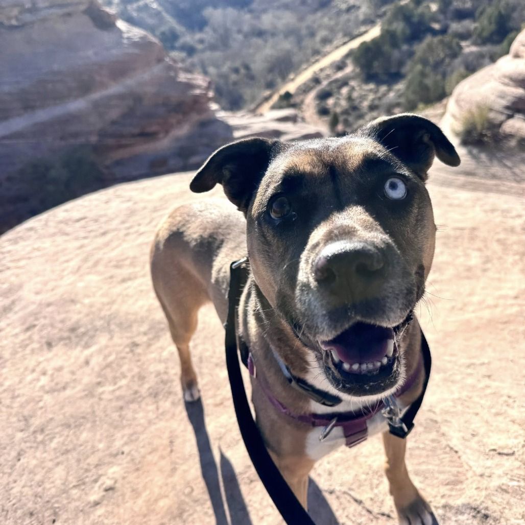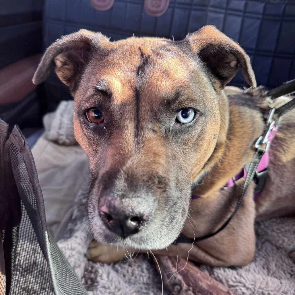 Chickadee is a sweet, gentle girl with a spirit as light and lovely as her name. One look at her and you’ll be captivated: she has one striking blue eye and one warm brown eye, a beautiful contrast that makes her feel like a rare and special find. Just like the cheerful bird she’s named after, Chickadee brings quiet joy wherever she goes. She loves her toys, carrying them around and playing with a soft, happy flutter. She enjoys heading out for walks, taking in the world with curiosity and calm, and she does wonderfully when meeting new dog friends along the way. Chickadee is the kind of dog who brings a sense of peace and sweetness into your day, a gentle presence, a comforting companion, and a friend who’s always ready to share life’s simple pleasures. If you’re looking for a loving girl with a soft heart and a little spark of magic, Chickadee is ready to land right in the center of your world.