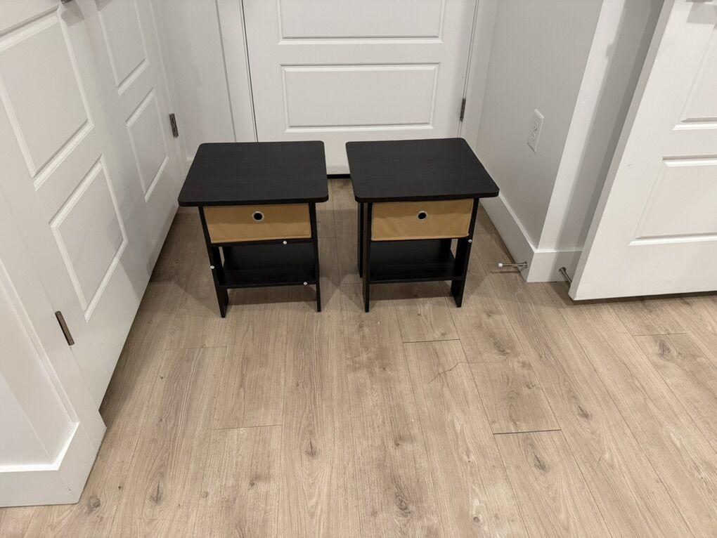 ApplePayI bought these from Amazon and didn’t check the height and they are way too small for my bedside. It measures 17” height and 15 1/2” width. They are dark brown with a light brown cloth drawer. This would be perfect for a child’s bedroom. See pictures for more details. These are basically brand new. These are also fcfs unless you prepay using Venmo or CashApp then I can hold it for you. DM me with questions or to negotiate. I’m located at 46 north Orange street SLC 84116