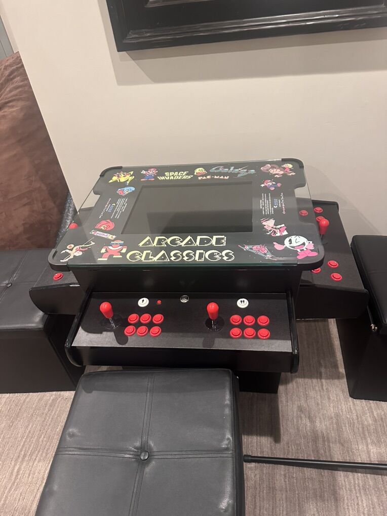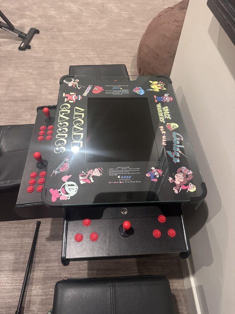 ZelleIt’s a classic arcade game table. It’s been used. One of the controllers is kind of glitchy. Or and this is a big or make an offer. Parents kinda want it gone.