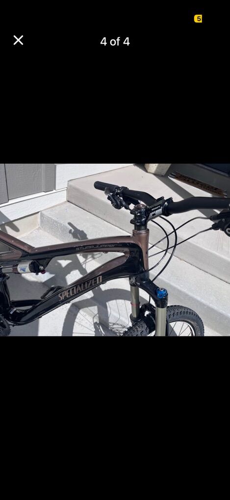 Specialized Stump Jumper Mountain bike (Large Size). This is an awesome bike and I almost hate to let it go, but I need the money. Gears shift perfectly! Shocks are great!  Tires are still good. Brakes work well! It’s just a sweet ride! I’m pretty firm at the $600 mark. It’s an awesome deal for the money!