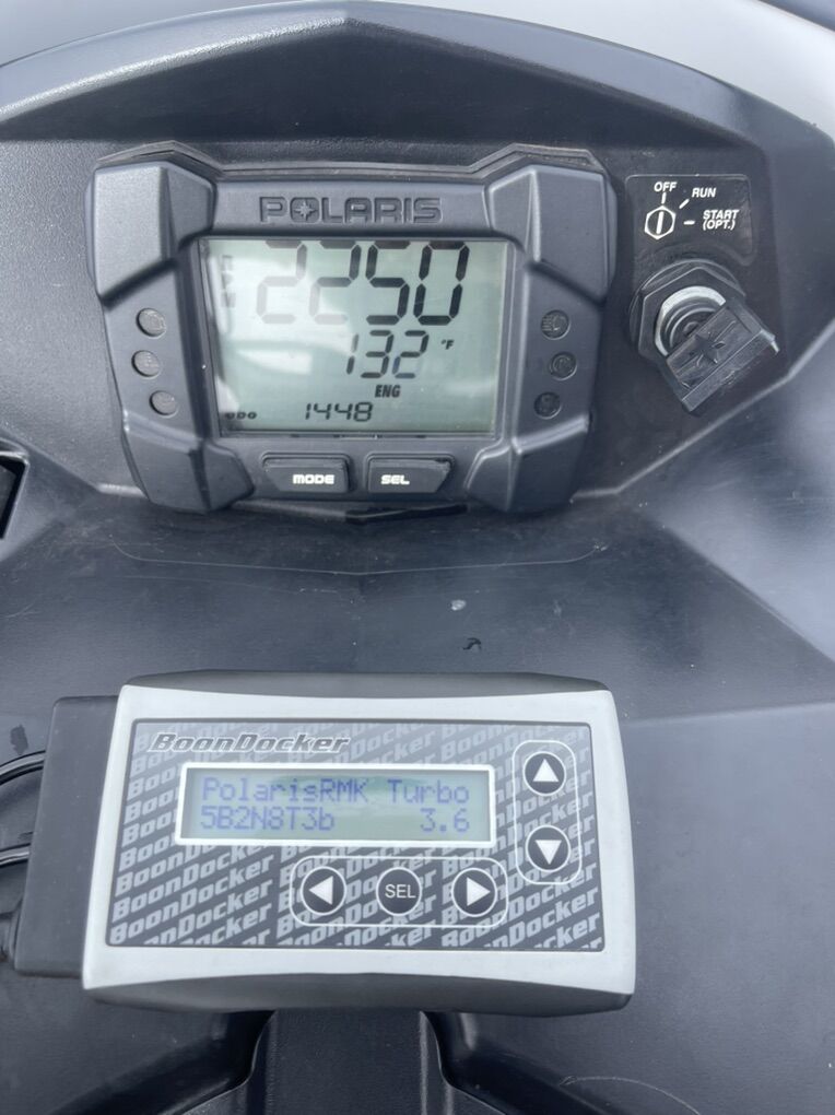 This 2013 Polaris 800 RMK Pro 165 is loaded and ready to ride! Equipped with a full Boondocker turbo kit and boost control box, this sled delivers serious power and performance in deep snow and backcountry terrain. • Odometer: 1,448 miles • Runs flawlessly – all maintenance is up to date and professionally done • Always fueled with 100 octane for optimal performance • Well cared for and garage kept