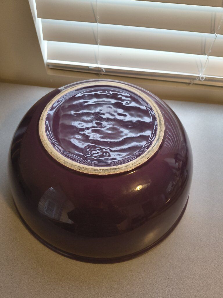 Vintage purple ceramic mixing bowl, 16" in diameter, very good condition, made in the U.S.A, $7.00 cash.