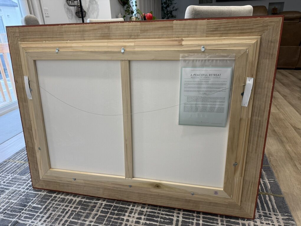 This simple cabin provides everything a man needs to sustain a rewarding life. The stream is pristine; I can drink its pure waters. It teems with fish; my boat lets me pursue the mountain trout when I choose. The woods abound with game. My cozy Adirondack chair invites me to relax and savor the refreshing mountain breeze. I've stacked firewood for the campfire that will warm the chill evening air. Above all, I am surrounded by beauty that feeds my spirit with endless reminders of God's grace. Limited Edition Canvas Thomas Kinkade Limited Edition Canvases combine old world craftsmanship with the finest materials and latest production technologies to produce extraordinary canvas artwork. Our reproduction process captures not only the color and mood of Thom's enchanting original painting, but the actual brushwork as well. Every piece is hand-retouched by skilled artisans, giving the painting a look almost identical to the artist's on-easel original. Vibrant colors, rich textures and color tones accurate to Thom's original brushstrokes are the hallmarks of your finished piece. Limited Edition Canvas Framing Thomas Kinkade Studios Limited Edition Frames are works of art unto themselves. Specifically crafted to accommodate Thomas Kinkade Studios Limited Edition Canvases, these hand crafted frames are the perfect complement to Thomas Kinkade Studios Artwork and will last for generations to come. Framing Features •Burl Limited Edition Canvas Frame •Premium Museum Quality Mouldings •Engraved Brass Nameplate •Secure, Removable Canvas Clips •High Strength Coated Wire Hanger