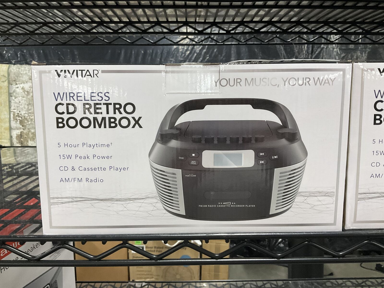 The Vivitar CD Retro Boombox is a portable audio system that merges a nostalgic, vintage design with modern connectivity options, including a CD player, cassette player/recorder, AM/FM radio, and Bluetooth wireless streaming.