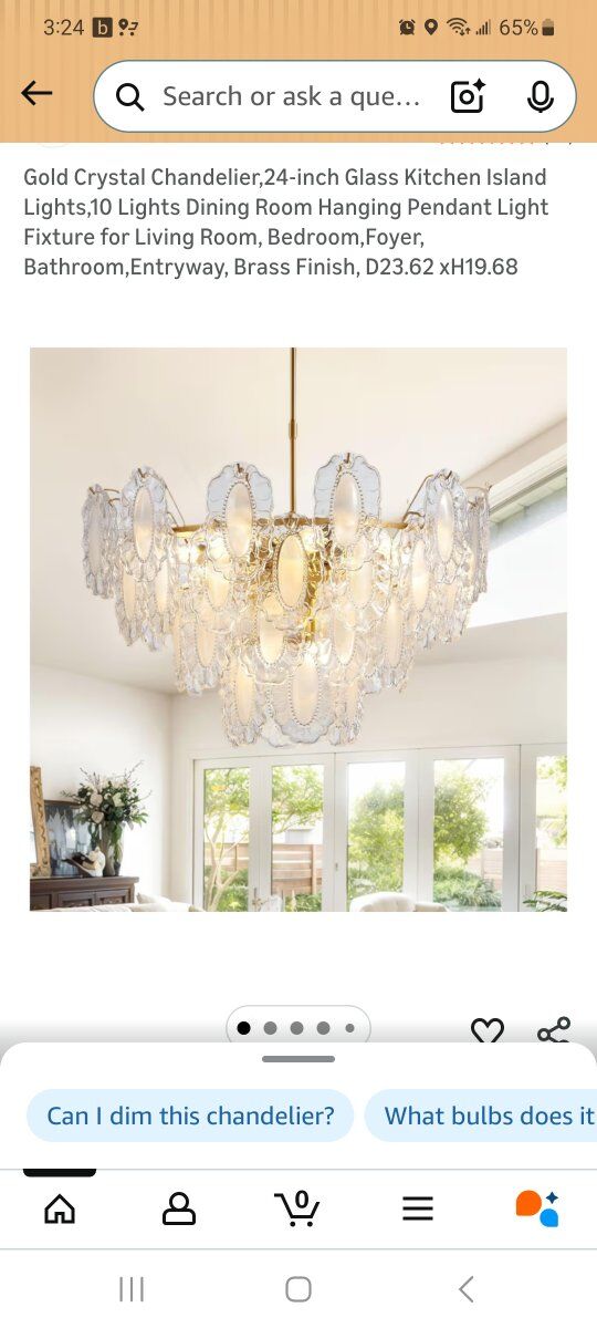 Tinkoso Gold Crystal Chandelier, 24-inch Glass Kitchen island Lights, 10 Lights, Brass finish, D23.62 xH19.68, $100 each