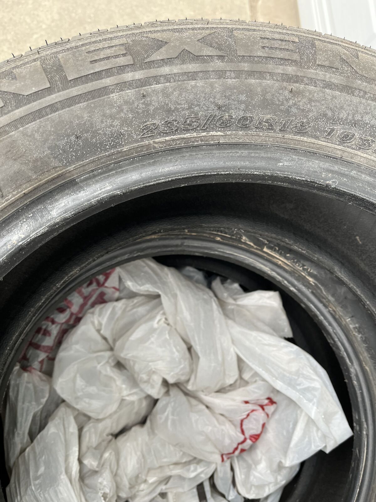 Set of 4 235/60r18 Nexen Tires with some life left in them still. They are free. Call or text anytime.