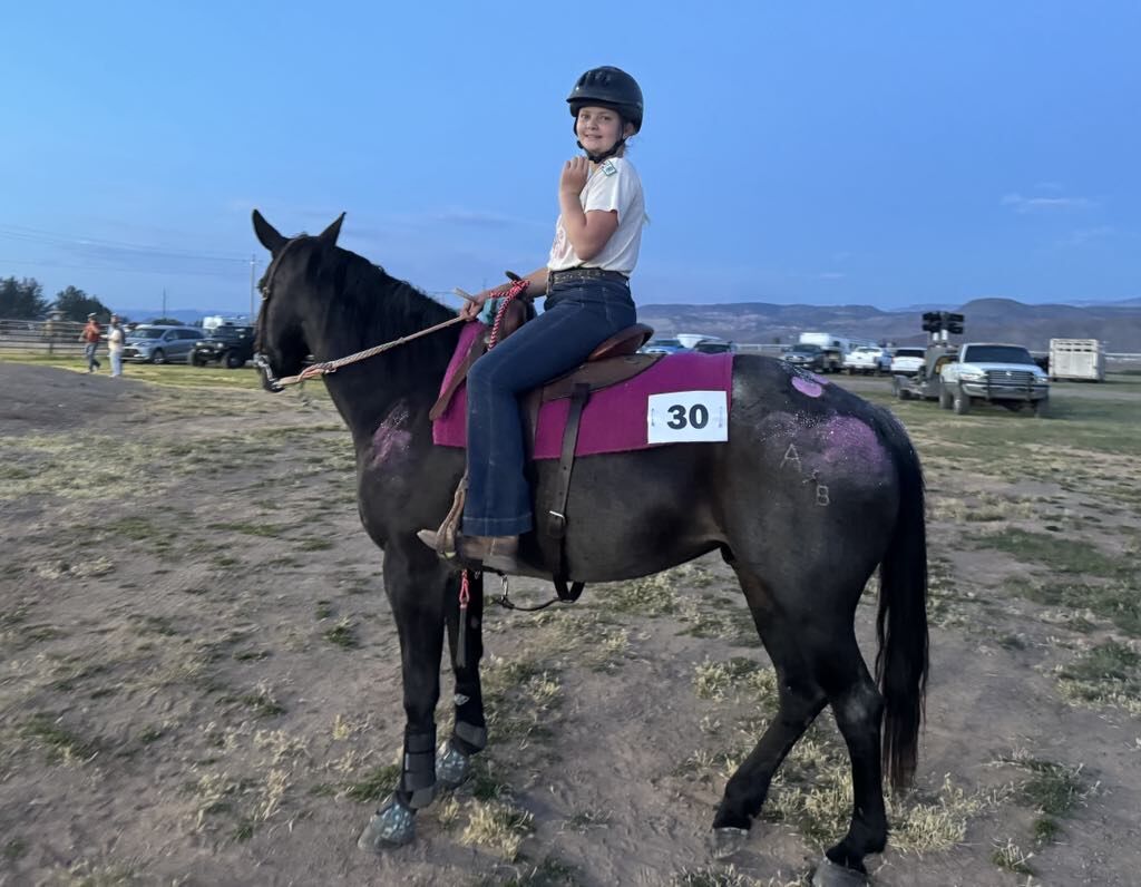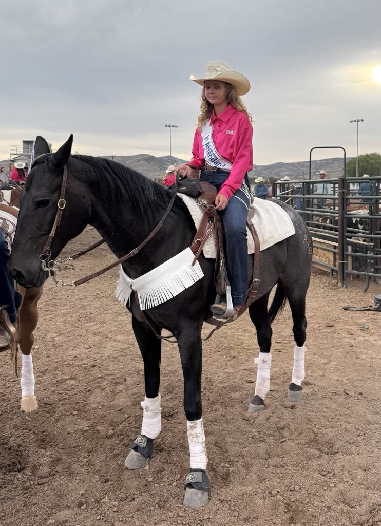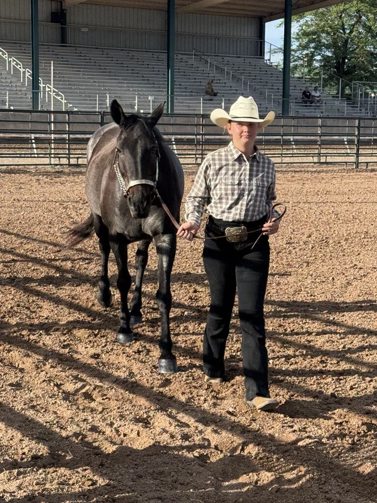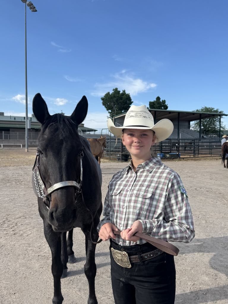 She is a true all-around mare that can rope both ends, runs at the top of the 3D in barrel racing, knows the pole pattern, and has been used in all Little Britches Rodeo events. Over the past year, our daughter qualified for State 4H, won a buckle at a jackpot barrel race, competed at Little Britches Rodeo, and used Cindy for flag drill team.