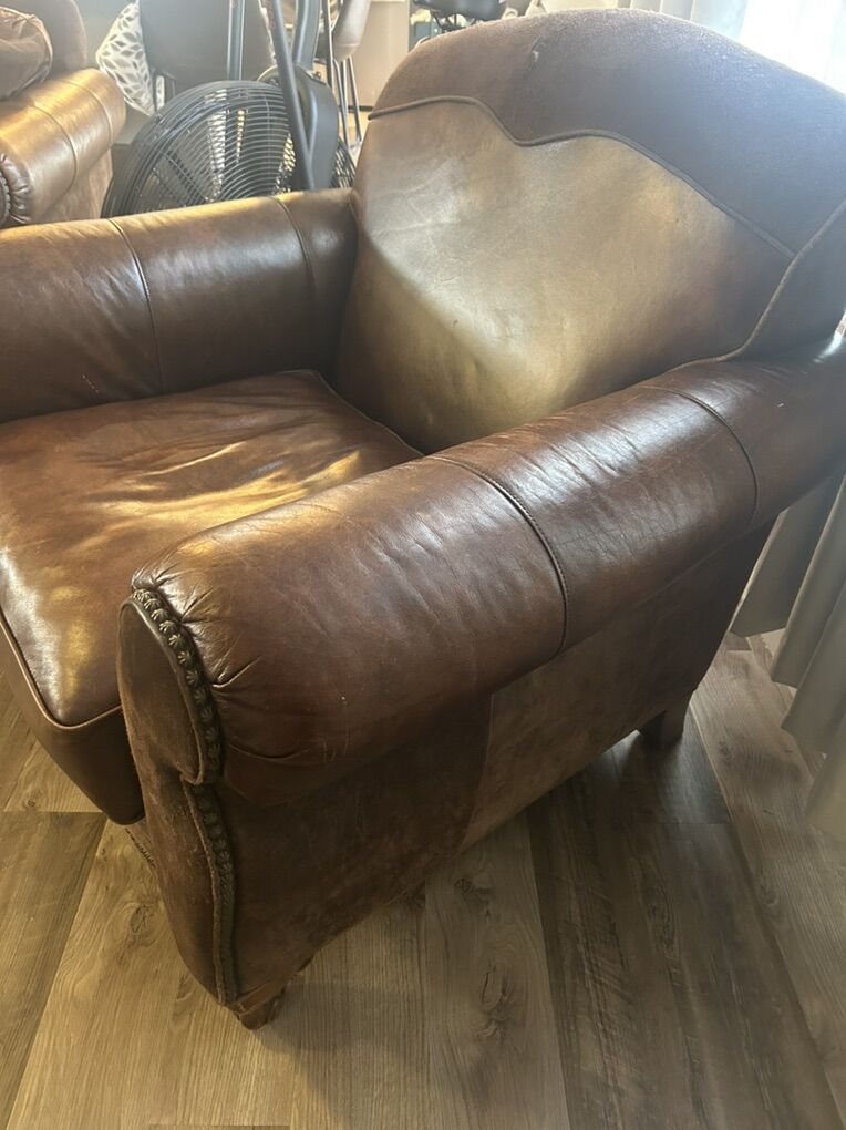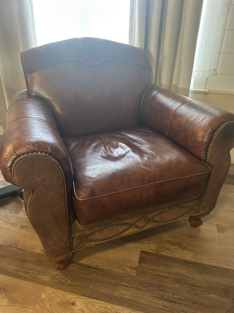 ApplePayWestern style brown leather and suede couch set with star shaped metal studs decorative details. Includes full size couch (7 feet) love seat (5.5 feet), and chair (3.5 feet). Couch has one visible tear in suede on back, love seat has no tears, chair has one small tear in suede on front. Other that those minor injuries this set is in great shape. The leather is soft and supple, no cracking, no scratches. Super comfortable. Dogs in the house but never allowed on furniture. We can move it out to driveway for pick up. Please text. Thank you