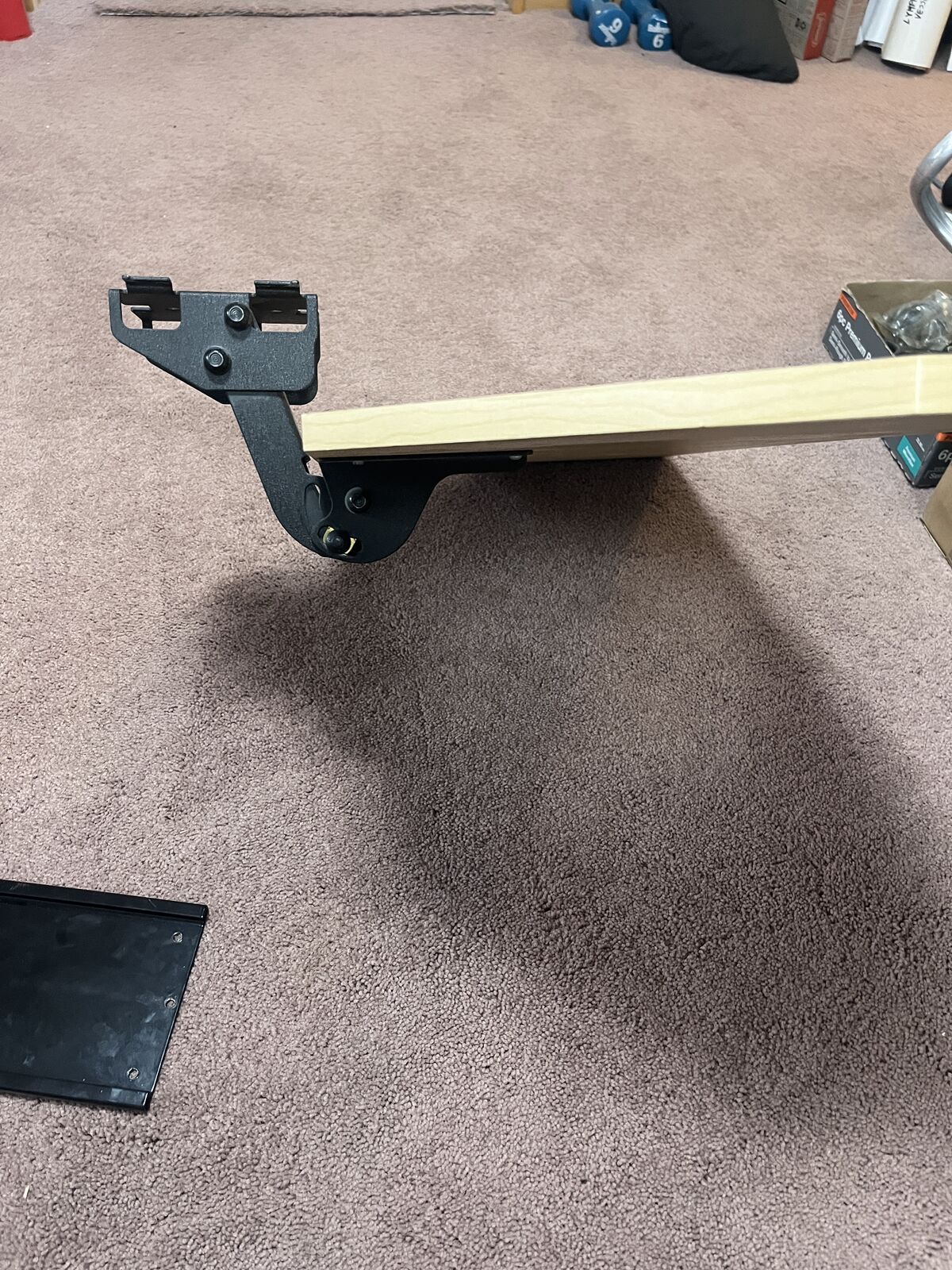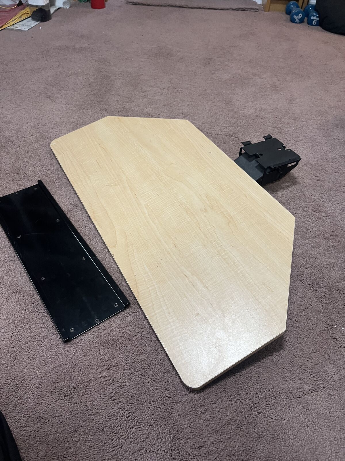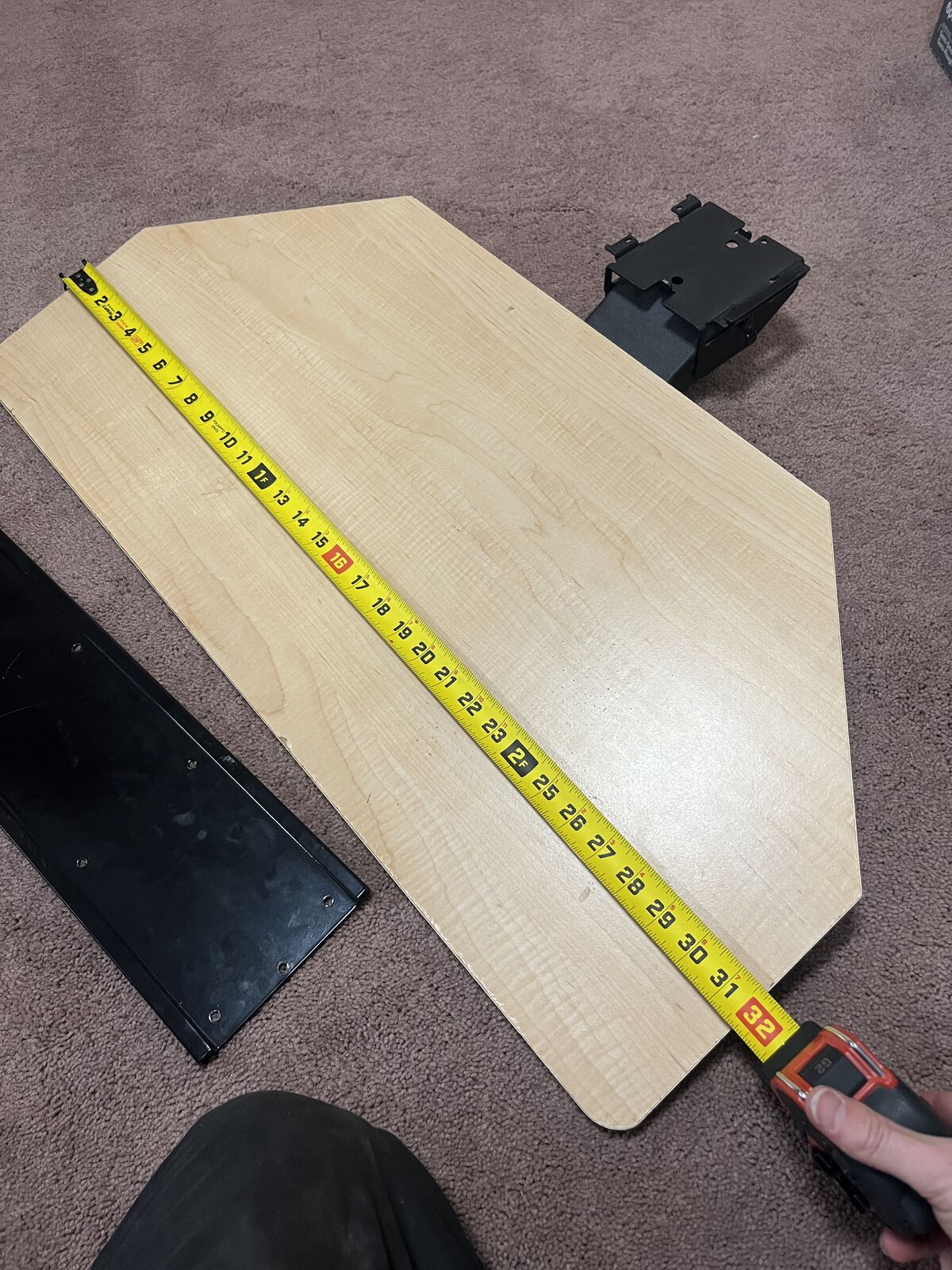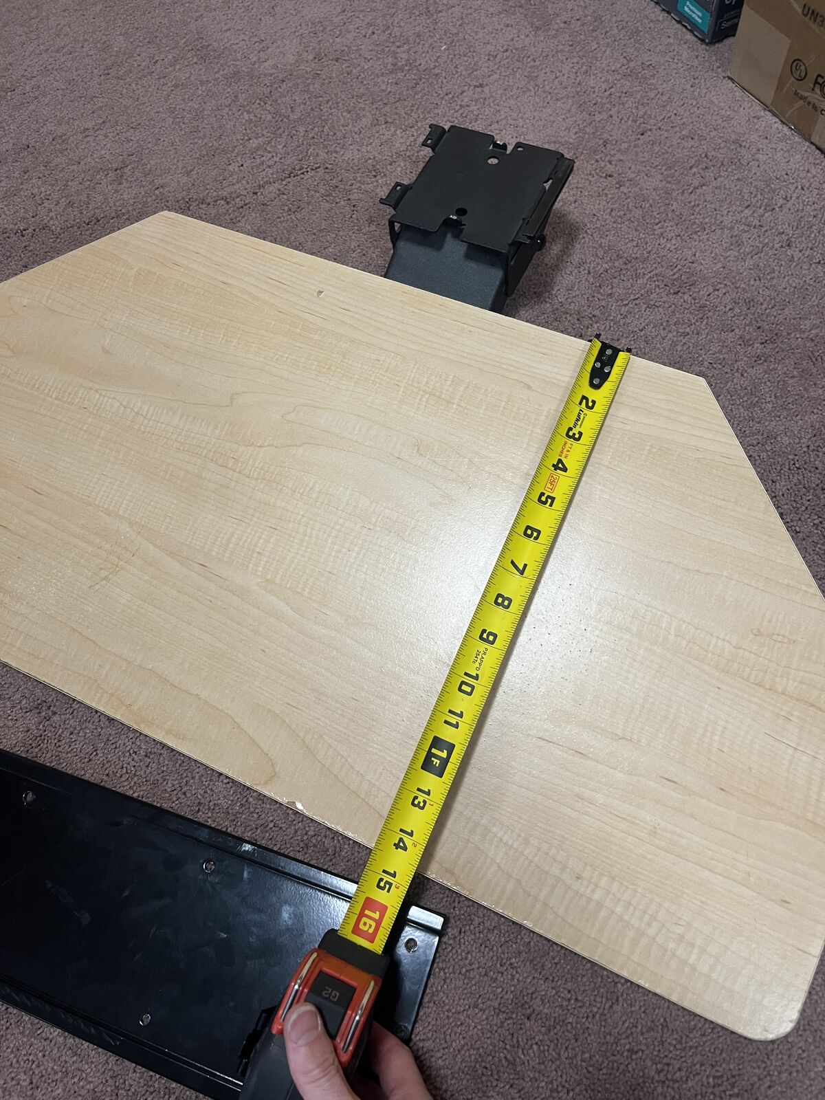 Screw the rail in under the desk and this tiltable height adjustable 32 x 14.5 keyboard mount slides in and out and pivots up and down. Missing small plastic slider rail but still functions fine. Could easy replace with 3D printed part or plastic slot. See video for functions. Edges and surface aren't perfect, but not horrible either.