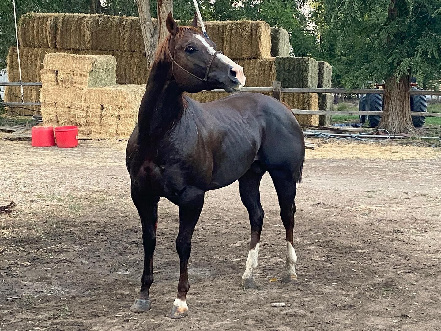 She's five panel negative (hasn't been tested for MYHM). She is confirmed in foal to our Wiescamp stallion, THIRTY NORTH FOURTH, for an April foal. Photo of stallion included.
