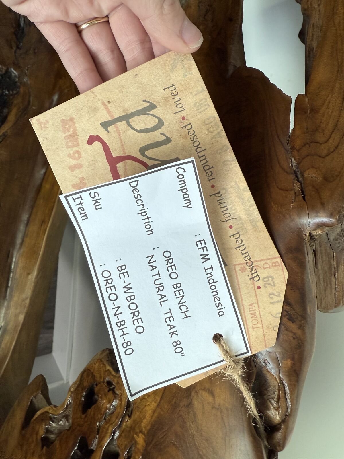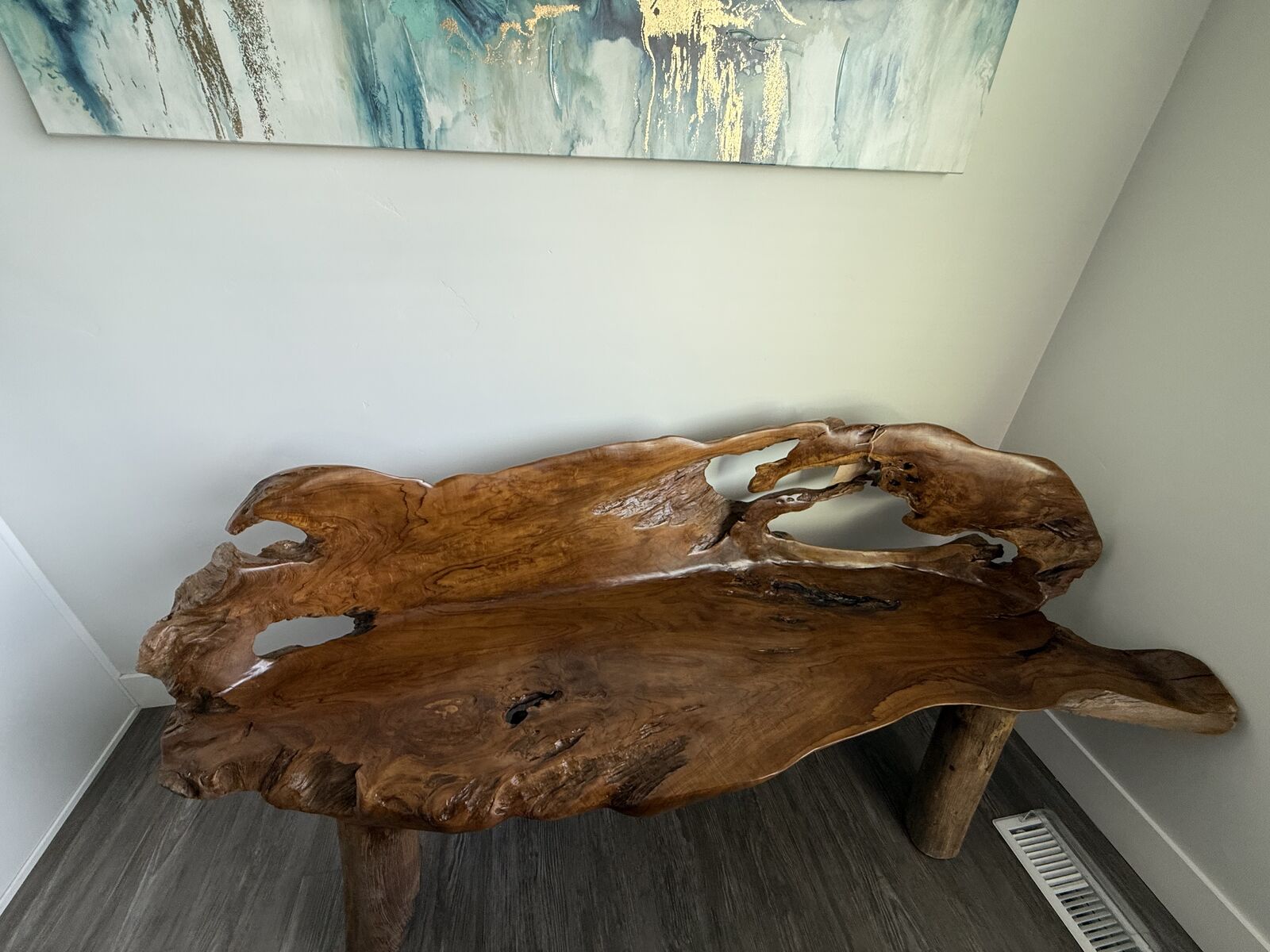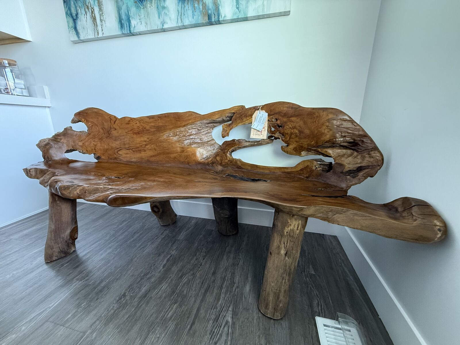 Selling my brand new unique teak wood bench. bought it hoping it would fit in the area I wanted but it's taking up to much room and unfortunately has to go. Retails for 1200 asking 800