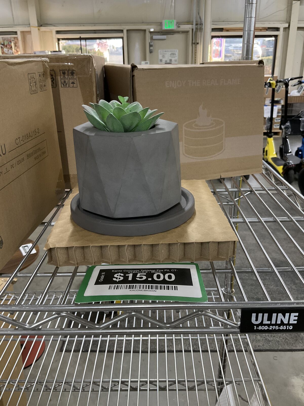 The Kante Concrete Tabletop Fire Pit adds cozy warmth and style to any space. Made from heat-resistant concrete, it uses smokeless ethanol fuel for clean, safe flames that last around 55 minutes. Lightweight and portable, you can place it on a table, balcony, or side table. It includes a heat-insulation base and metal extinguisher for safe use, and doubles as a decorative piece when not in use—complete with artificial succulents. Perfect for gatherings or creating a relaxing atmosphere.