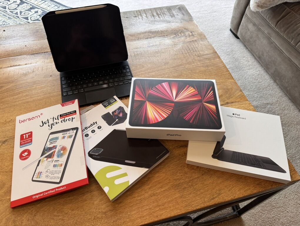 -iPad, Magic Keyboard, Pencil, Cover Buddy, Paperlike screen cover - All boxes/packaging included.