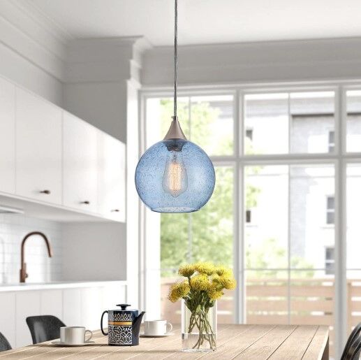 Specifications: Type:Pendant Lighting Material:Metal&Glass Color:Nickel&Blue Number of Lights:1 Wattage:40W Per Bulbs Voltage: 110V Bulb Base: E27 Bulb Included:No Power Source: Hardwired Why Does This Modern Kitchen Island Pendant Light Fixture Deserve Your Purchase? 1.Premium quality pendant light fixtures. 2.Energy saving and power efficient chandeliers. 3.For commercial and residential application. Use as chandelier, in the living room, kitchen, bedroom, for hotels, offices, galleries, malls, and more! 4.Instant on, no flickering, no harmful UV. 5.Even light distribution, exceptional color accuracy and solid lightning performances. Note: 1.Please read the size of the base carefully, and confirm whether the junction box is suitable before you place an order. 2.Please install it by a licensed electrician. No-Worry Purchase: Good quality packages are selected to protect the pendant lighting from inside to outside during transportation, we have checked every light before shipping to make you smile with this purchase. If you have any questions, please feel free to contact us. Whether it's pre-sales or after-sales, we will reply to each and every one of your questions as fast as possible!