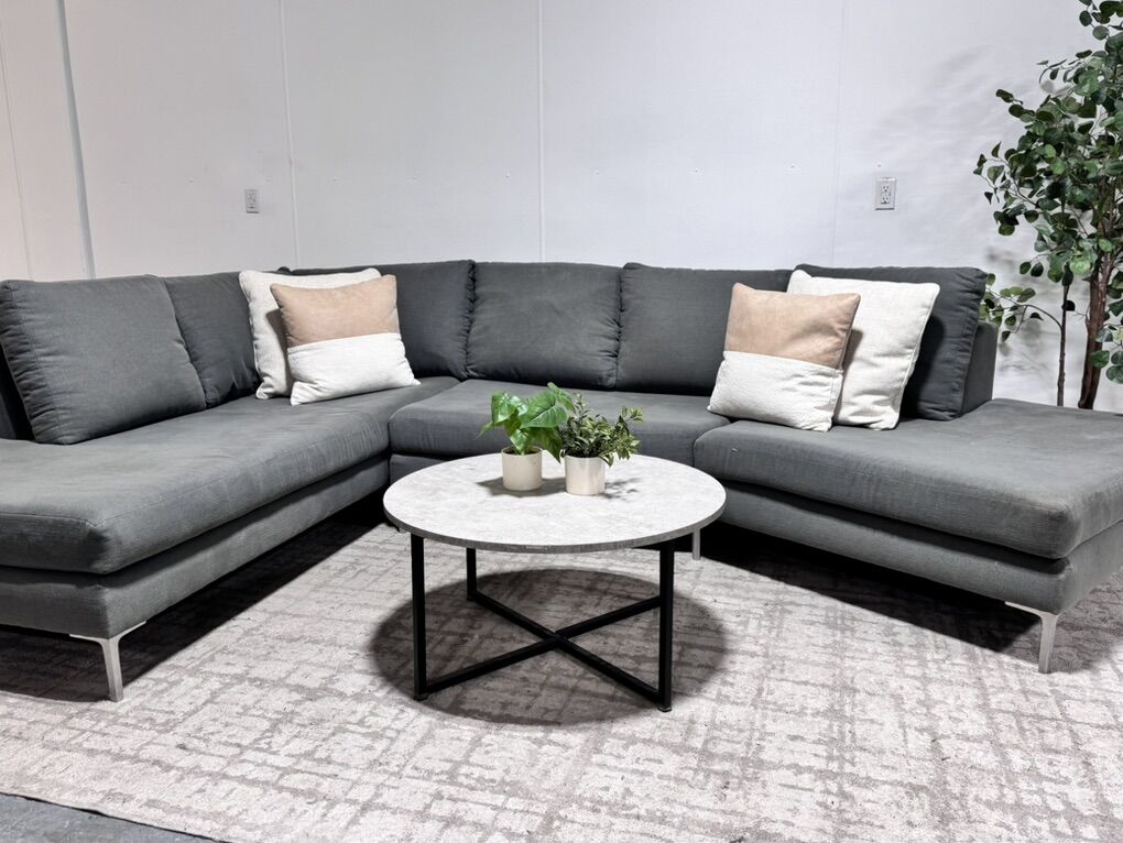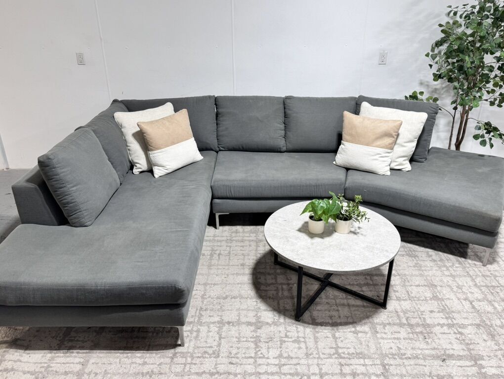 VenmoSelling this mid-century modern oversized angle sectional from Room & Board. Easily seats 6-8 . Cushion covers are removable. In used-good condition. It’s just over 3 years old so normal wear and tear, but still has many good years left. No structural damage, rips, or odors. From a non-pet, non-smoking home.