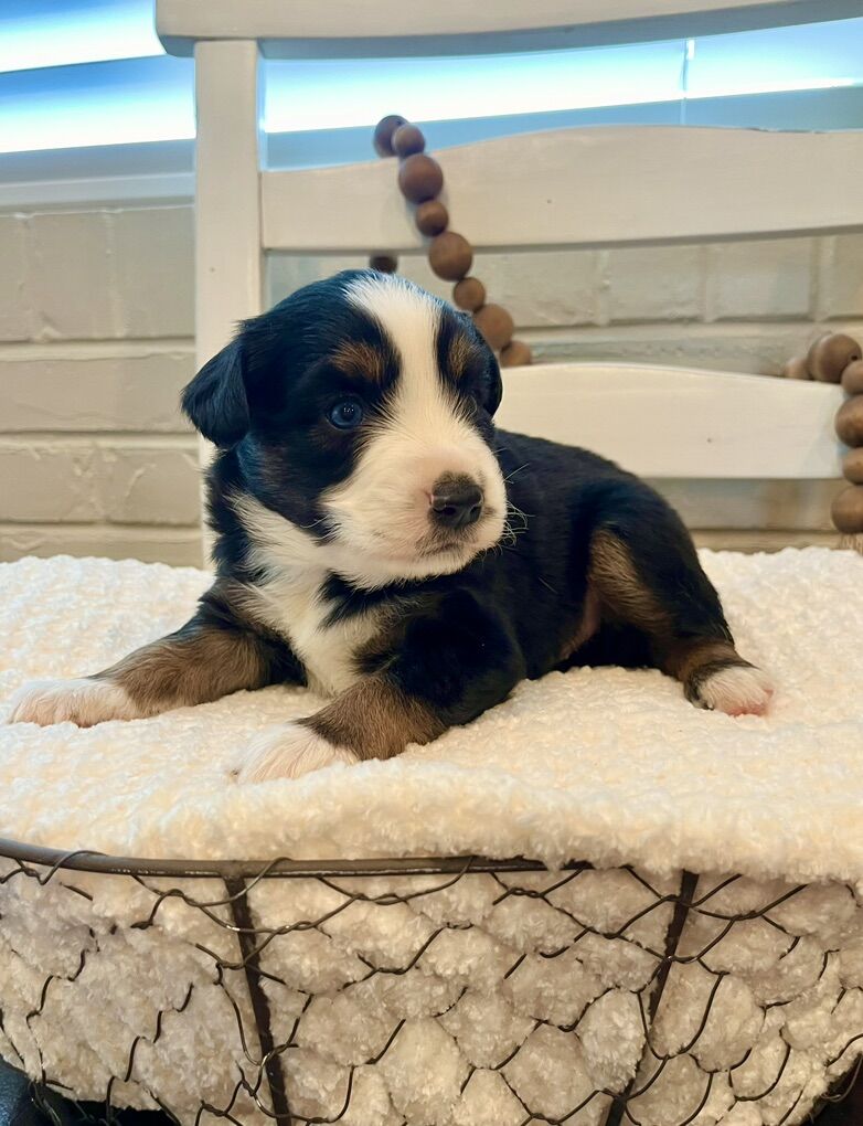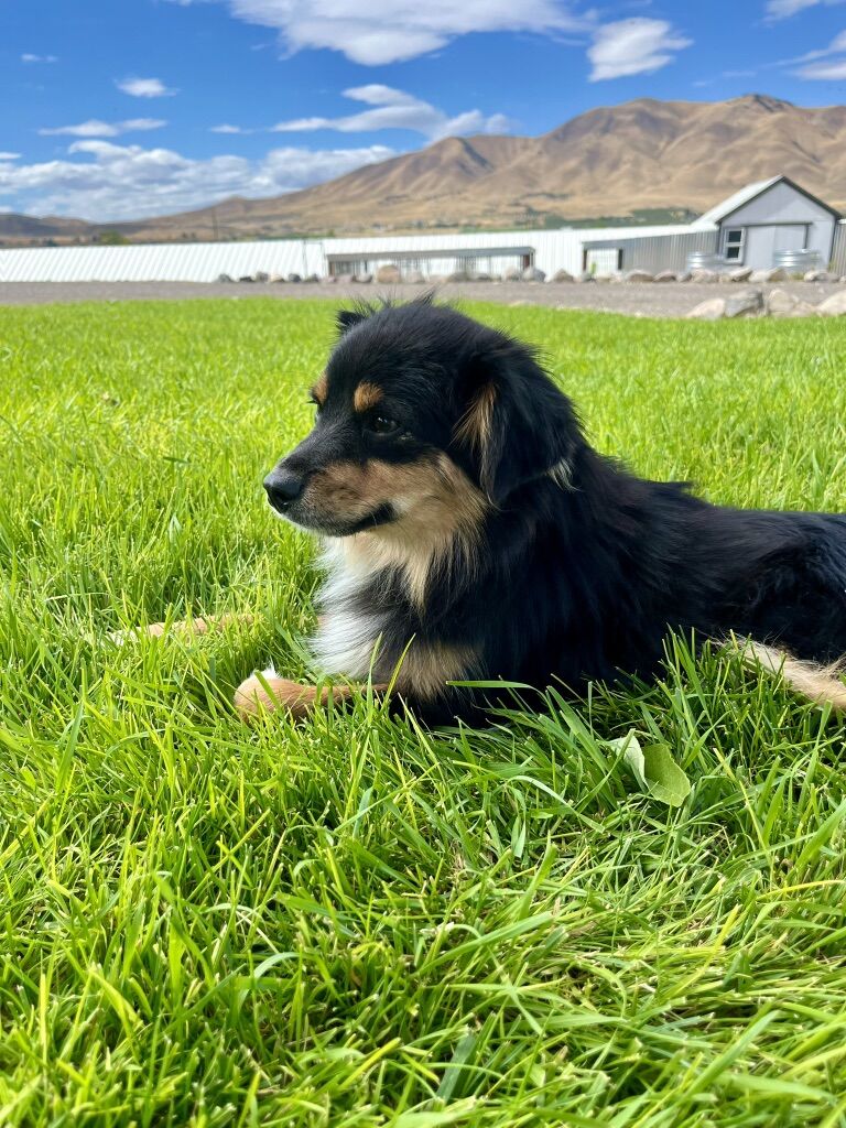 Mav is a beautiful pup with gorgeous black tri coloring and smoothest coat and is the perfect size! He is very sweet and smart! He weighs 10 pounds and is the perfect family dog!