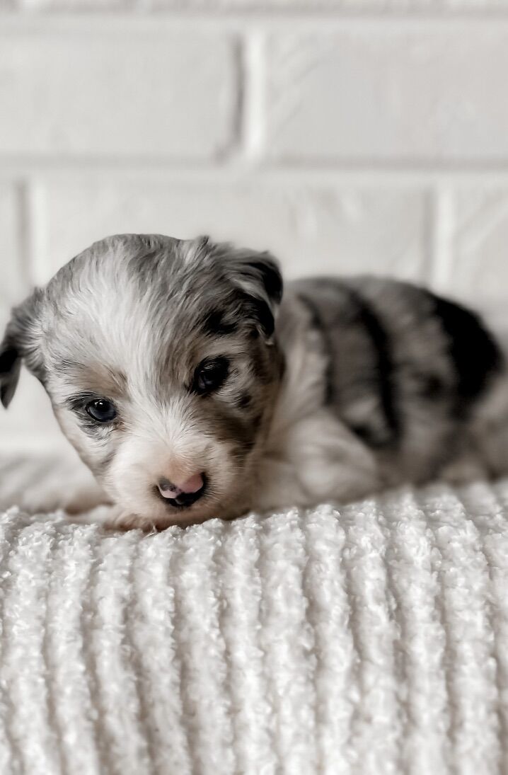 Chase is the sweetest and silliest blue merle with gorgeous blue eyes and the fluffiest coat! He is so playful and friendly and so loving! He is 12 pounds and is the best dog!