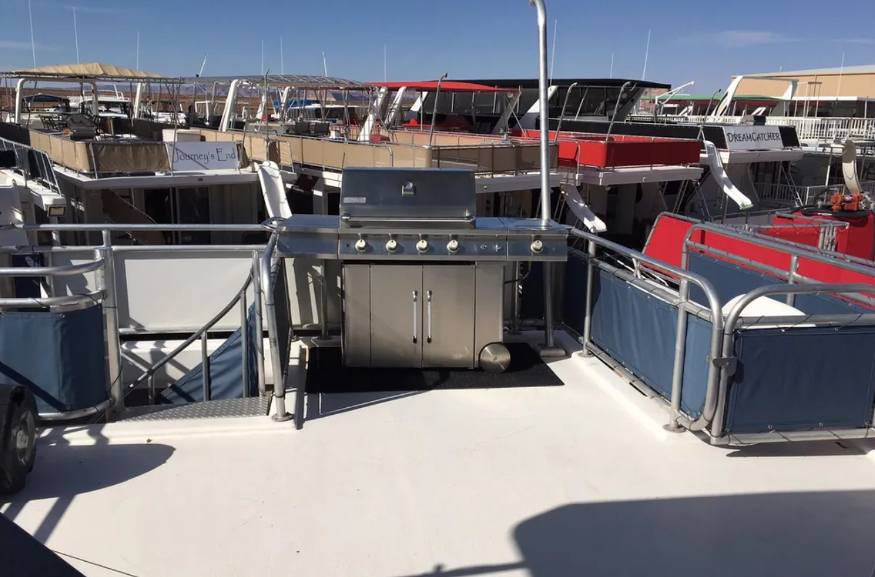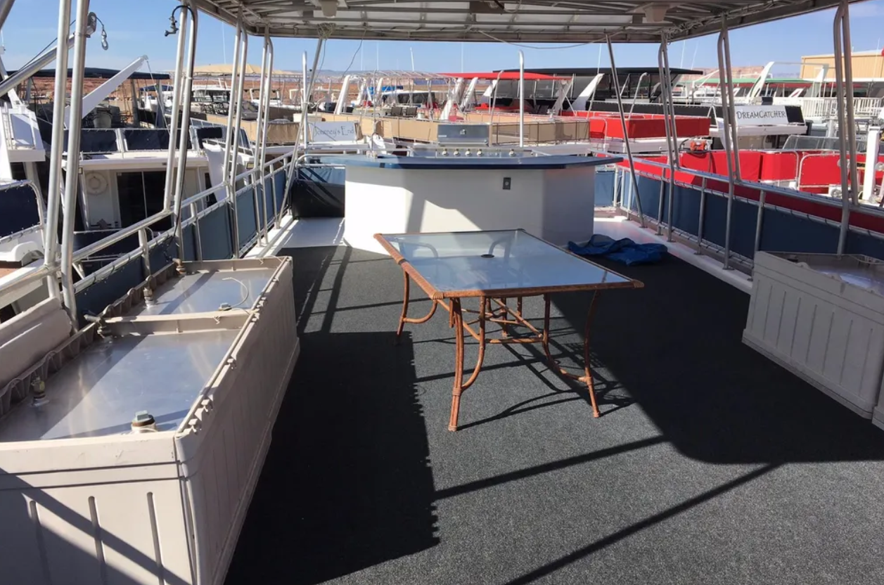 Starchaser is a spacious 2005 Sumerset houseboat designed for comfort, relaxation, and entertaining. With multiple gathering spaces, generous sleeping accommodations, and a large upper-deck entertainment area, this boat provides an ideal setup for families and groups looking to enjoy Lake Powell in style.