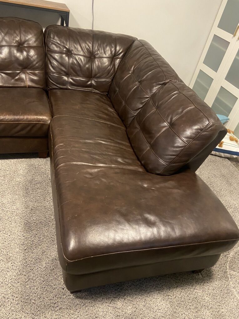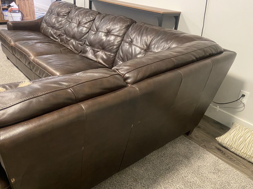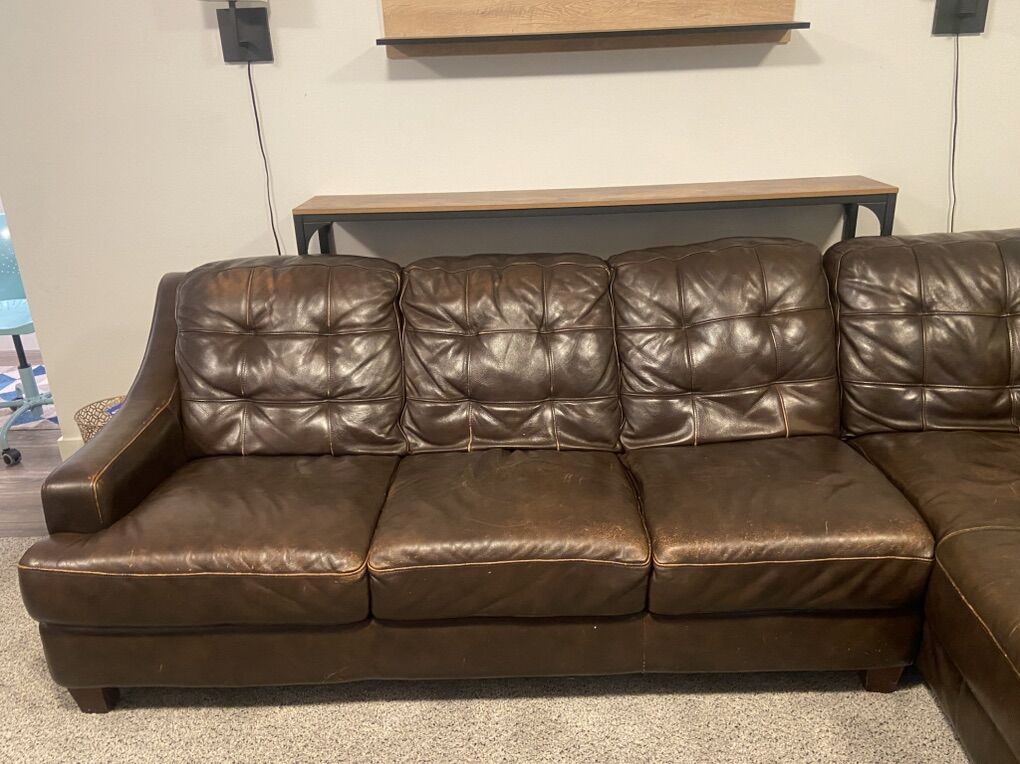 VenmoBrown leather sectional purchased from Bassett Furniture. High quality leather. It’s about 15 years old, it’s definitely used but in okay condition. It’s a 2-piece “L” shaped unit.