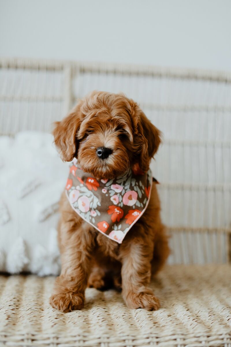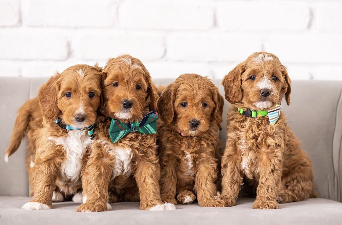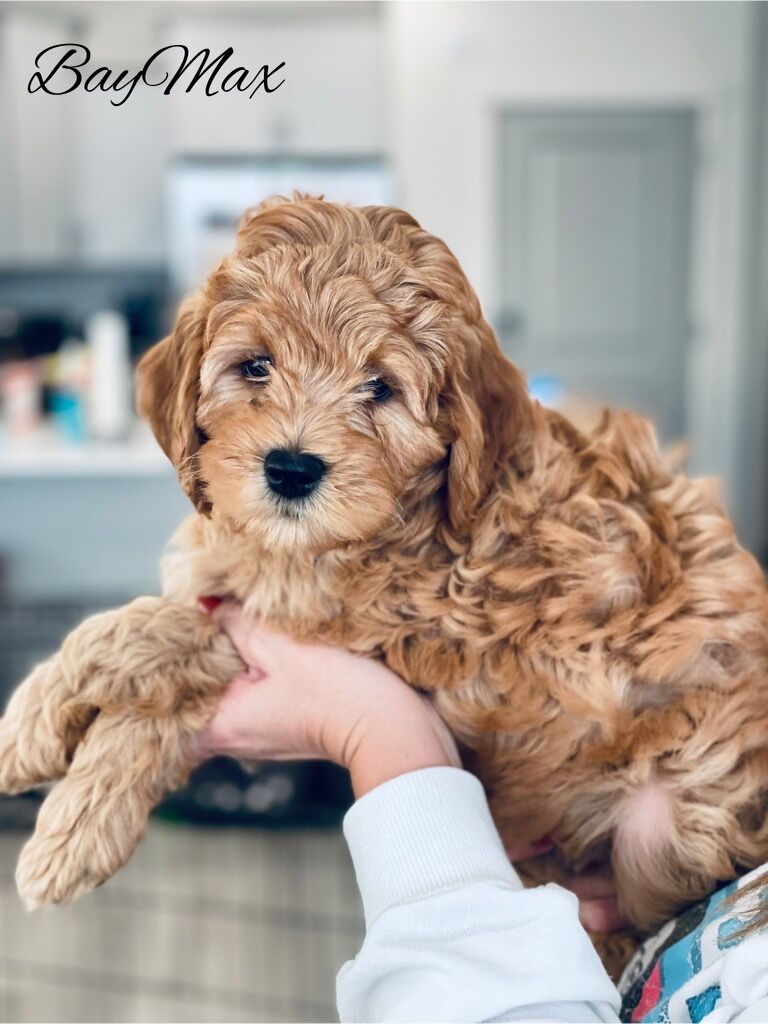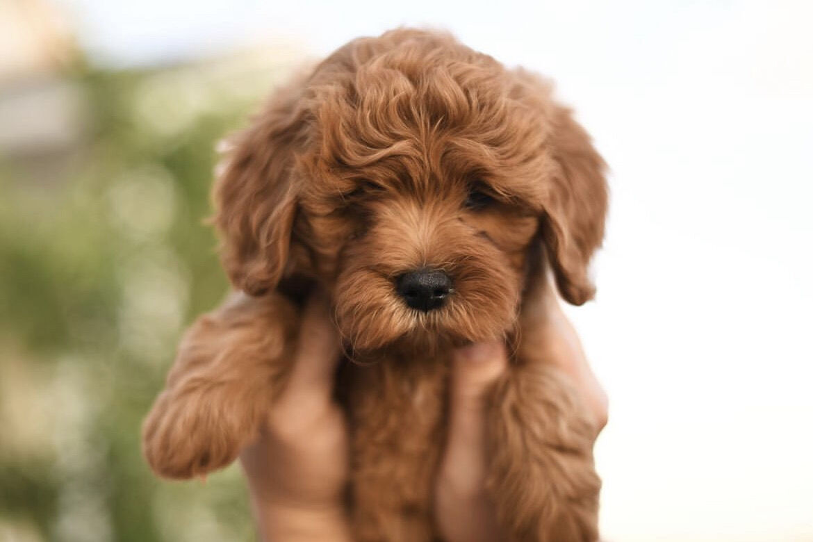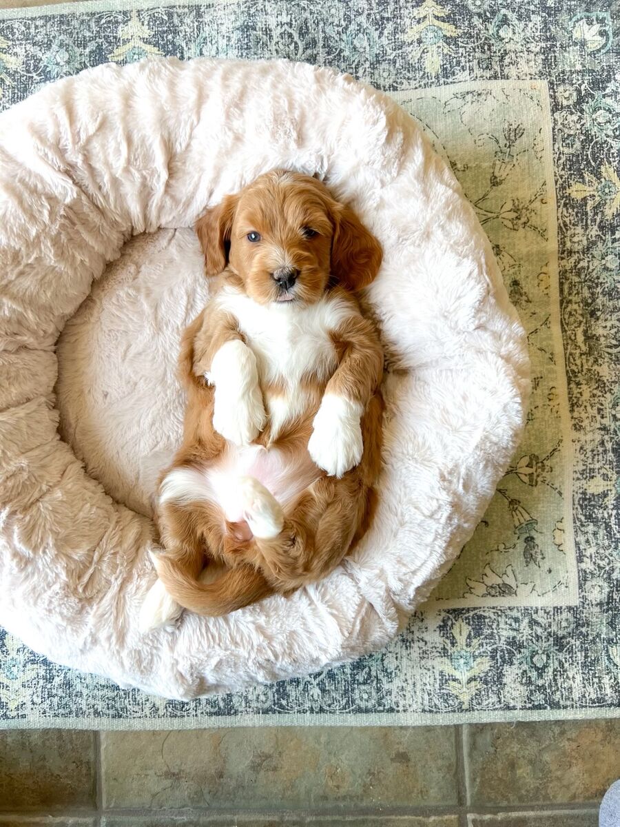 ApplePayArtisan Doodles' Copper weighs 19 lbs and has perfect proportions and a square structure (he is neither leggy nor short-legged). His puppies are expected to inherit his perfect round face and nose. Copper has an extremely deep red, straight/wavy coat. He does NOT carry parti or Irish spotting, making him the perfect choice for your parti and abstract females to get all dark reds and red abstract offspring.