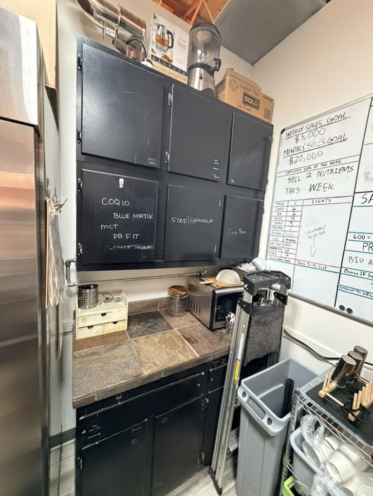 • 2 professional oxygen bar therapy systems • Blendtec blender with silence shield • Vitamix blender • Coffee & tea dispenser • Margarita machine • Snow cone machine • Popsicle molds • Stainless display racks
