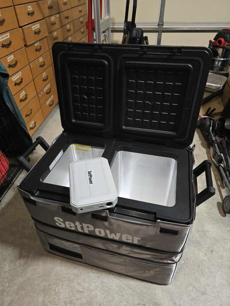 Set Power X1 SetpowerPG216Wh PortablePowerStationPowerBank: (https://www.setpowerusa.com/products/setpower-pg216wh-portable-power-station?currency=USD&variant=42277018206348&utm_source=google&utm_medium=cpc&utm_campaign=Google%20Shopping&stkn=ba86d8fb0f50&gad_source=1&gad_campaignid=21465165262&gbraid=0AAAAABqw14cqOdr4cBnnuWV3rvZmOy8U5&gclid=Cj0KCQiAm9fLBhCQARIsAJoNOcsE4ymdDmLn9ECwplZX458Y99uBaIgbI35TsVN2jKXKJGRbXwqyrewaArmDEALw_wcB) X1 soft cooler X1 Setpower47.6Qt 45L PT45 12V Freezer Camper Trailer Refrigerator | Dual Zone with cover; PT45: (https://www.setpowerusa.com/products/canada-shipping-pt35-45-car-fridge?_pos=2&_sid=8ac004c89&_ss=r)