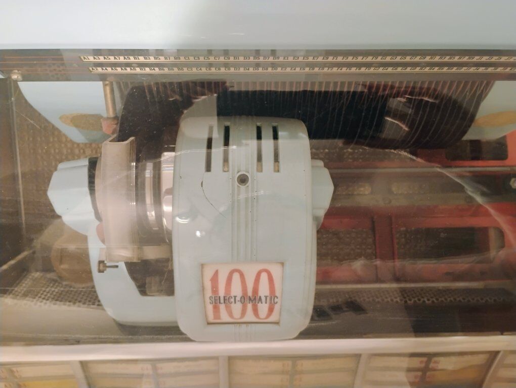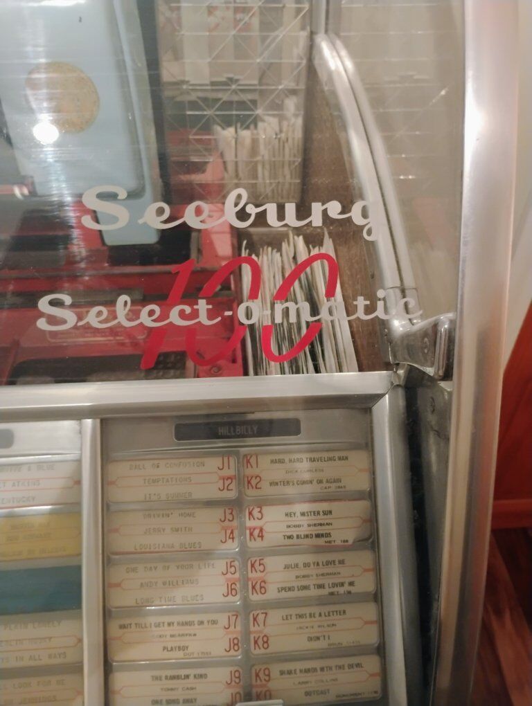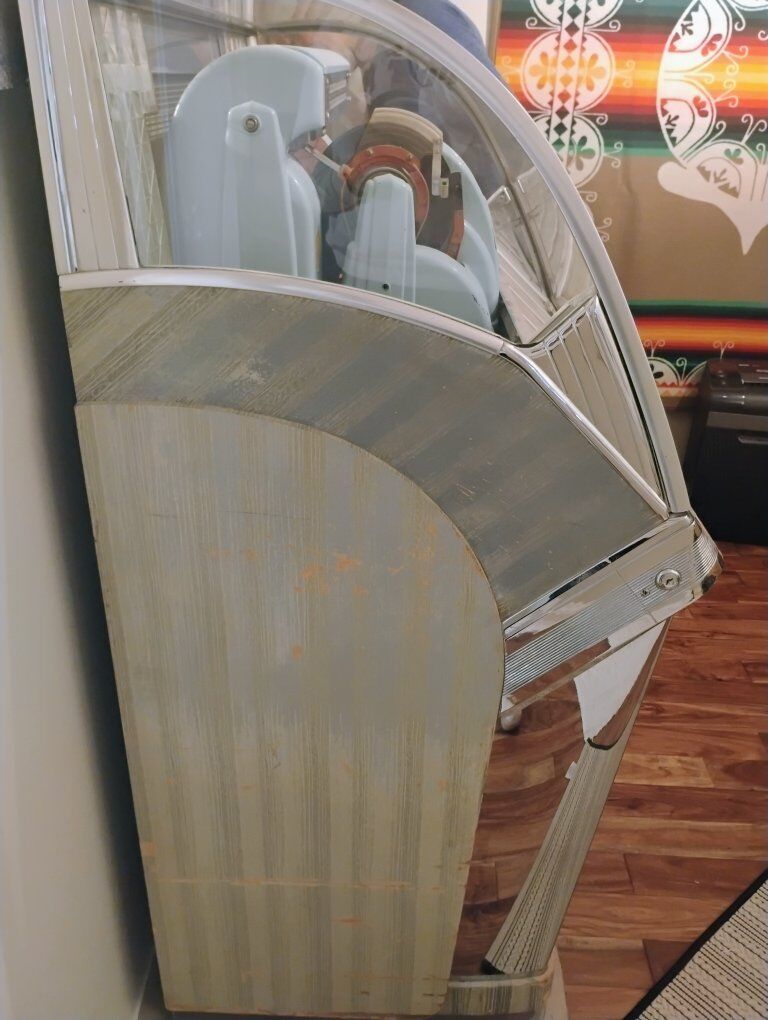 Venmo1950s Seeburg Select O Matic Jukebox. Working, but needs the relays cleaned. Has lighted columns, but was not plugged in when pictures were taken. Asking 1000.00 o.b.o You will need a vehicle and manpower to move it.