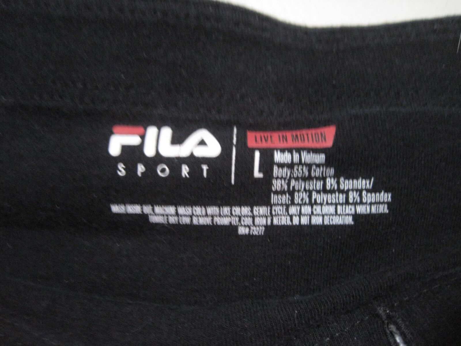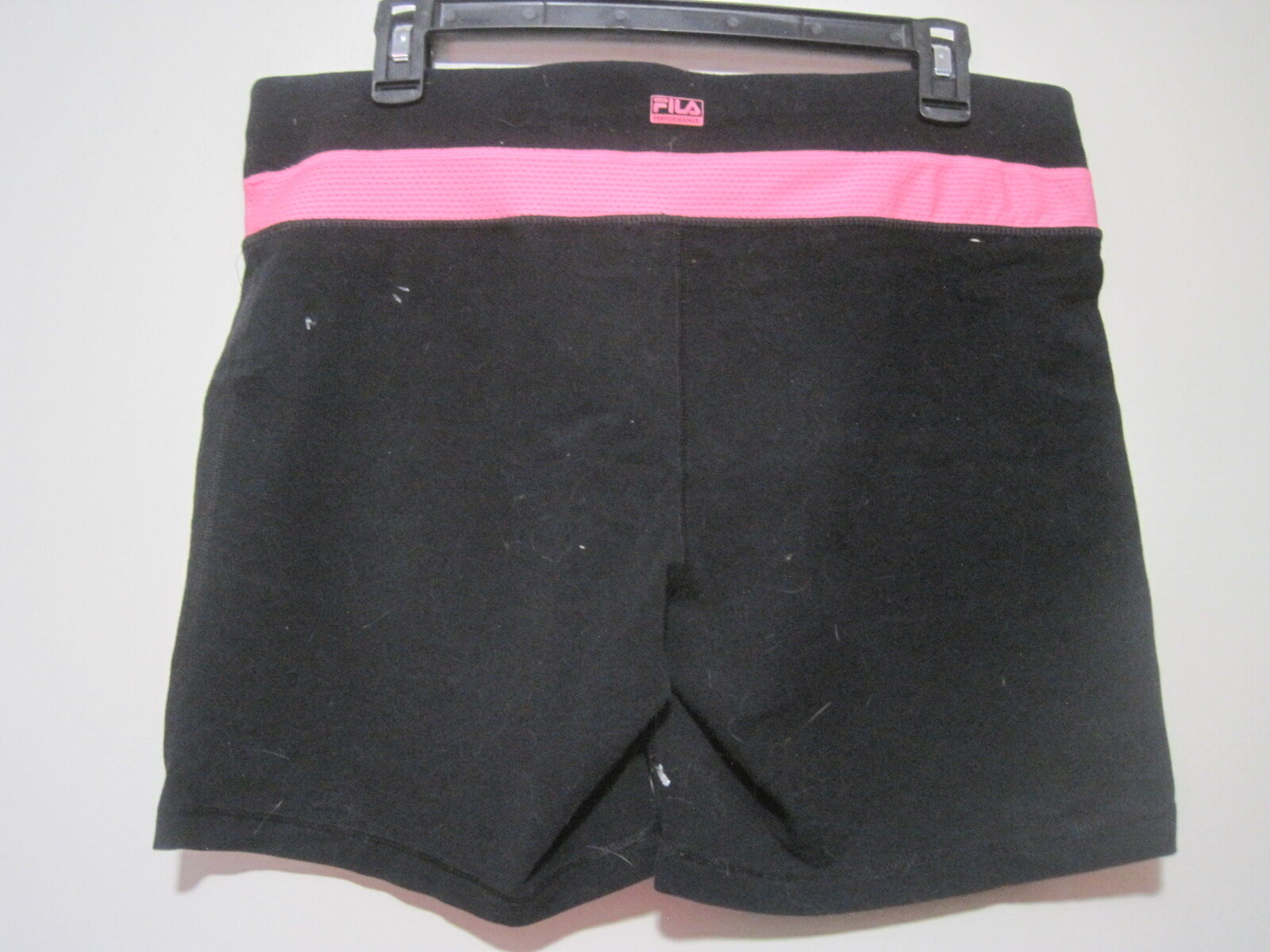 The FILA SPORT Women's Large Black & Pink Stripe Flash Fitted Athletic Elastic Shorts are designed for maximum comfort and performance. Made from a blend of polyester, spandex, and cotton, these shorts are lightweight, stretchy, and machine washable. The black color with pink stripes adds a stylish touch, perfect for both activewear and casual occasions. With features like an elastic waist and a 6-inch inseam, these shorts are ideal for activities such as tennis, cycling, golf, volleyball, and more. Designed by FILA, these athletic shorts are a must-have for the summer season.