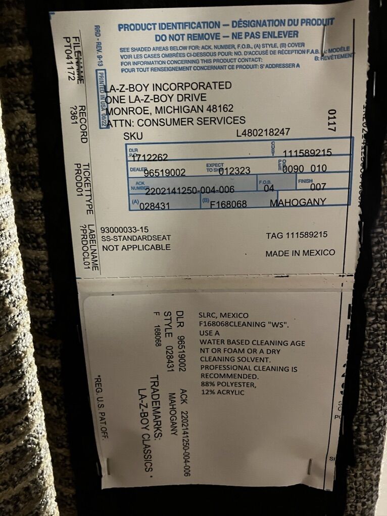 New Lazy Boy High Leg Reclining Chair. Very comfortable classy look. Reason we are selling it is we bought the wrong color. We ordered the same chair in a day color. Our loss, your gain. Paid over $900. Asking $380.