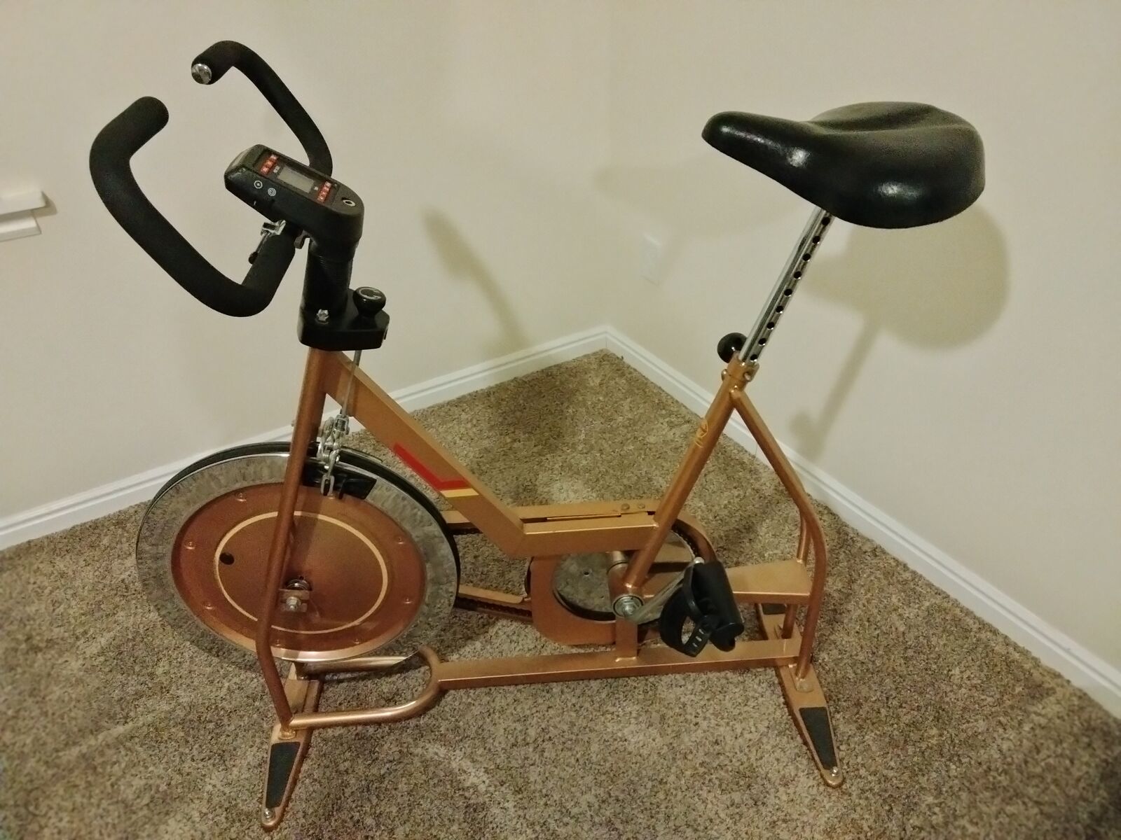 ZelleSchwinn DX-900 stationary bicycle, excellent condition, heavy flywheel for smooth ride, adjustable friction resistance, electronic display.
