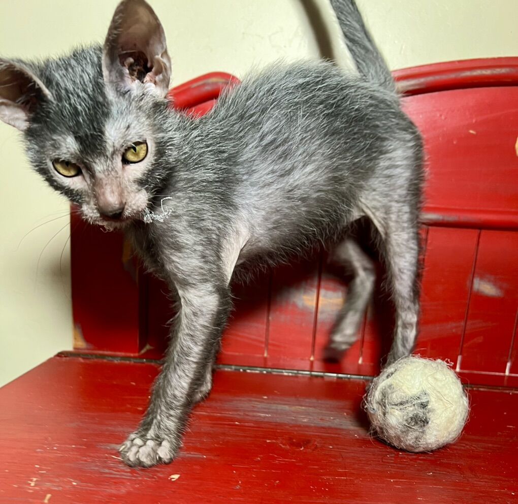 This handsome 4-month-old black roan male kitten is ready to find his perfect family. He has been raised in a loving home, surrounded by people, and is well-socialized, affectionate, and confident.