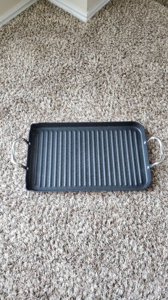 Grill in the comfort of your home with this Curtis Stone DuraPan grill pan. Designed to be used on the stone or in the oven, it provides a convenient way to get that just-grilled flavor.