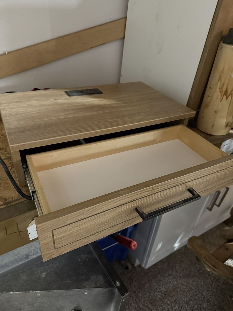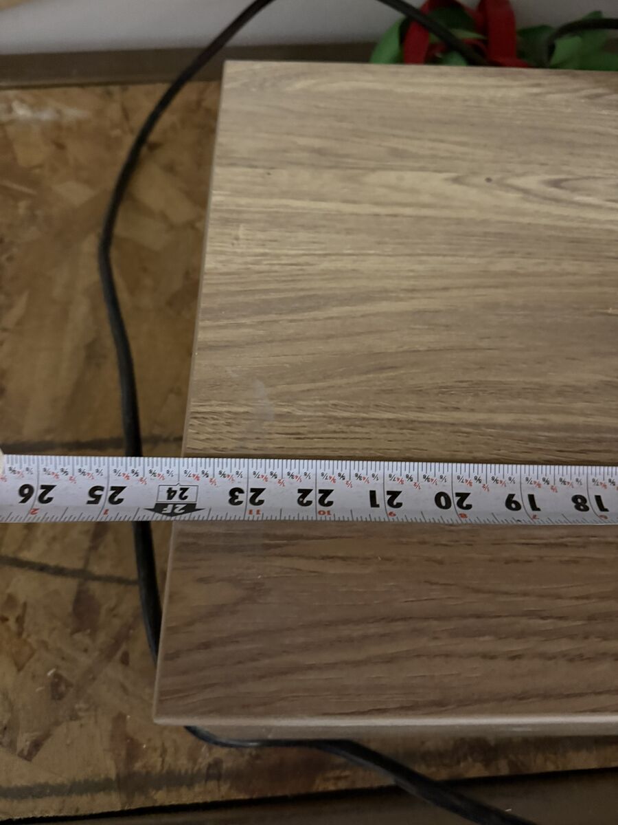 This is a commercial grade floating nightstand that came out of a hotel remodel. It has a tamper resistant outlet on top and is made to look like a white oak melamine. Great shape. Also have some desks that match that i'll give you a great deal on if you take the combo.