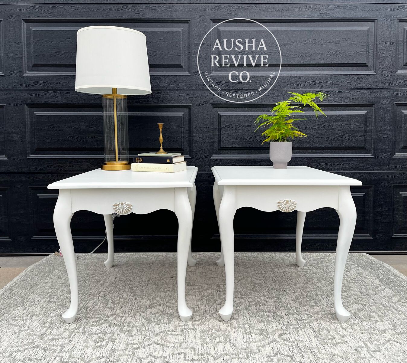 VenmoLARGE Beautifully refinished solid wood side tables end tables, or nightstands, thoughtfully updated in a soft alabaster white for a timeless, elevated look.