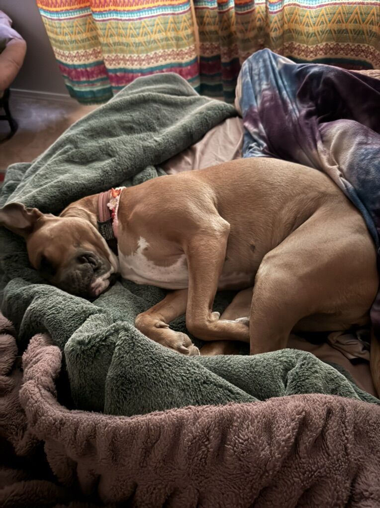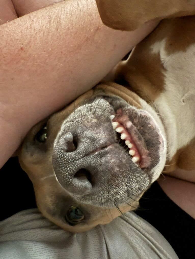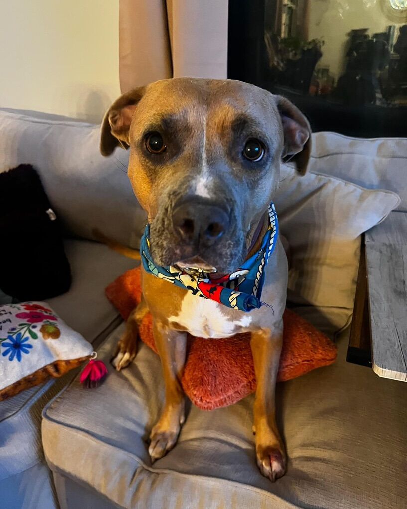 Gracie is truly the sweetest girl. She is gentle, affectionate, and would happily be a full-time lap dog if you let her. She is fully house trained, and has been amazing with our family. She bonds deeply with her people and just wants to be close, loved, and included.